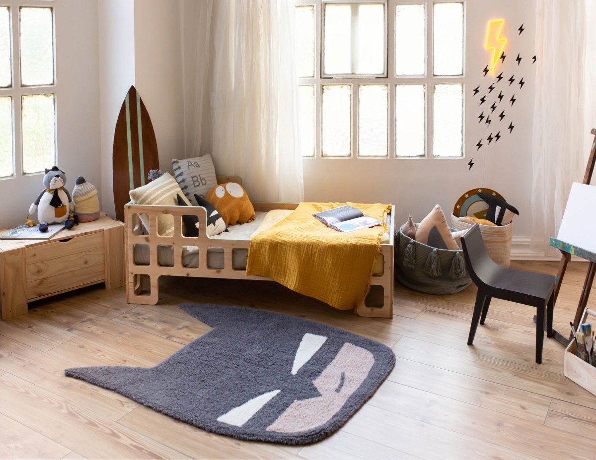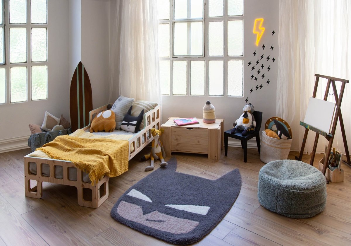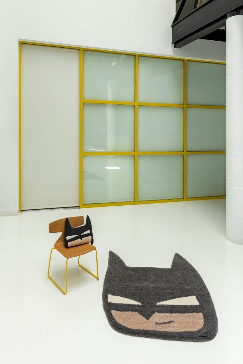 Be your own hero! As one of the most characteristic superheroes created by artist Edgar Plans, the Batboy rug is made in short wool pile in Charcoal, Misty Rose and Natural colours. Comes with a shaped anti-slip underlay and a practical cotton bag.