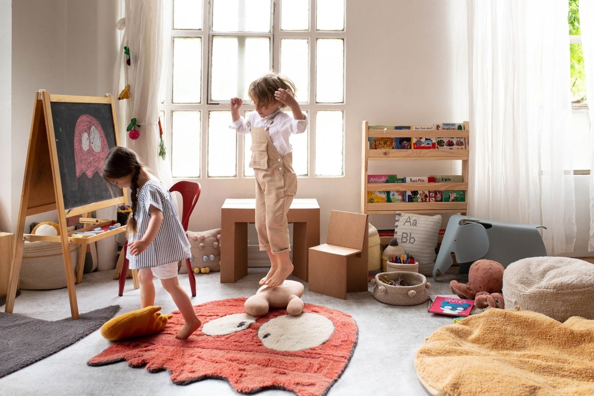 Made from sustainable, machine-washable wool, it’s as practical as it is fun, ensuring easy care for busy family spaces.