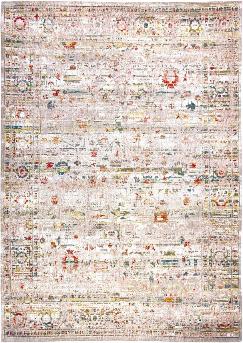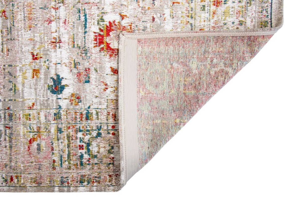 Inspired by the intricate motifs and timeworn beauty of Ottoman-era textiles, this rug features a finely distressed pattern with delicate floral and geometric elements woven into its design. The subtle ivory base is brought to life with splashes of warm red, golden yellow, deep blue, and soft green.