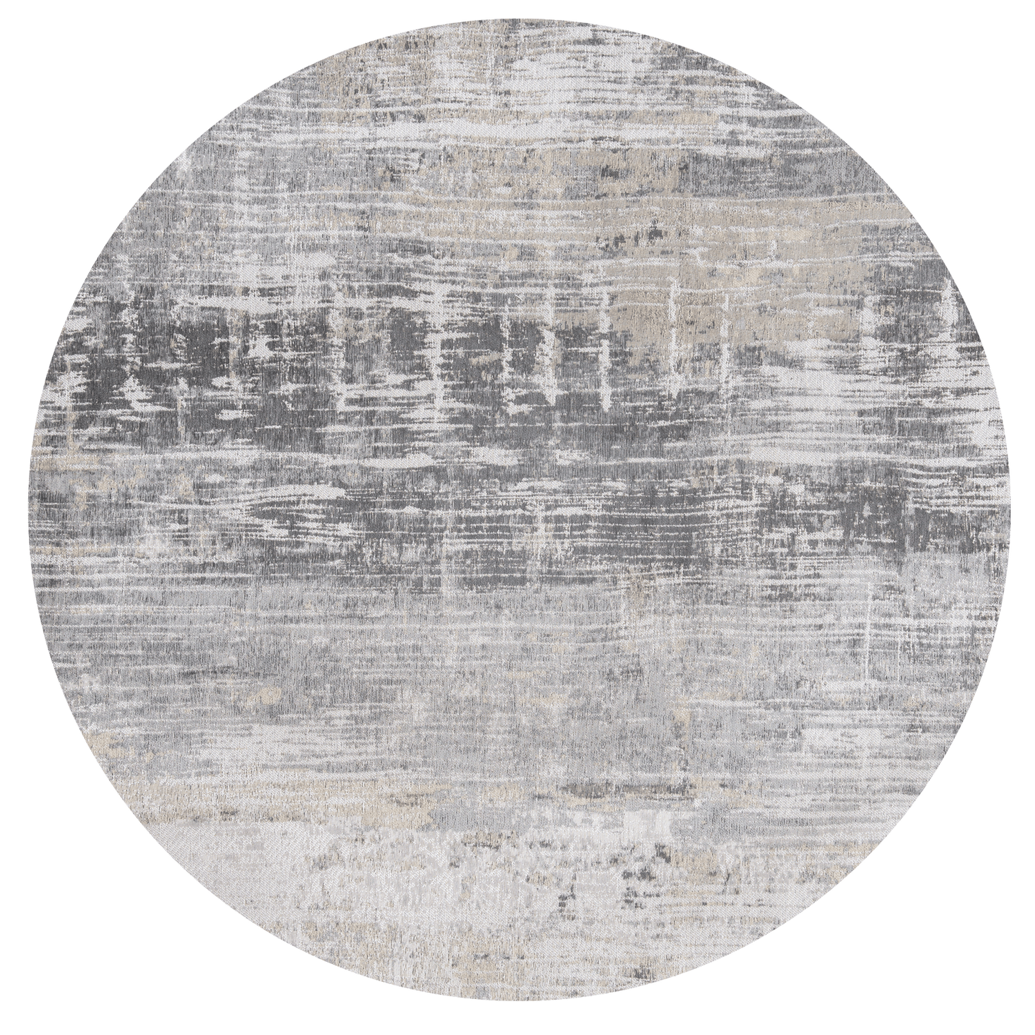The Louis De Poortere Atlantic Streaks 8716 Coney Grey Round Rug offers a sleek and sophisticated design with a subtle mix of cool greys, soft whites, and gentle beige tones.