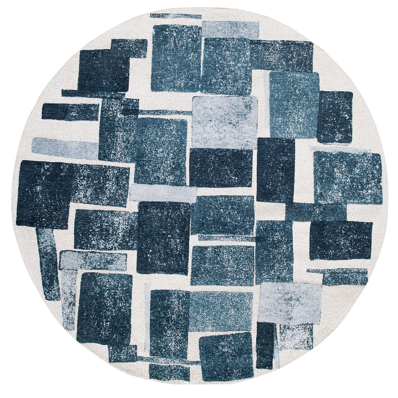 This round rug is an excellent choice for modern, urban-inspired interiors or minimalist spaces in need of a dynamic focal point. Its cool blue palette makes it ideal for calming living rooms, stylish home offices, or even bright, airy bedrooms. The circular shape softens rigid layouts, creating a harmonious balance in your decor.