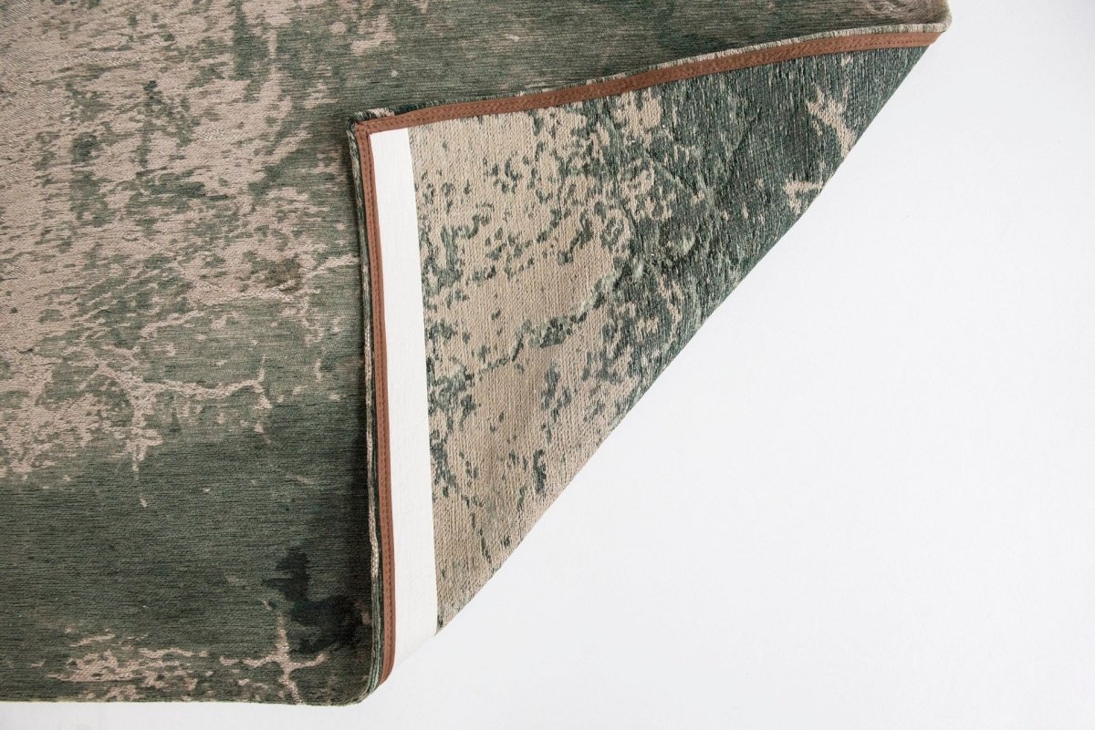 This distinctive rug captures the essence of nature with its deep, earthy green tones and abstract design reminiscent of the textures found in dense forest landscapes. The combination of dark pine and muted beige hues brings a sense of depth and organic beauty to any room.