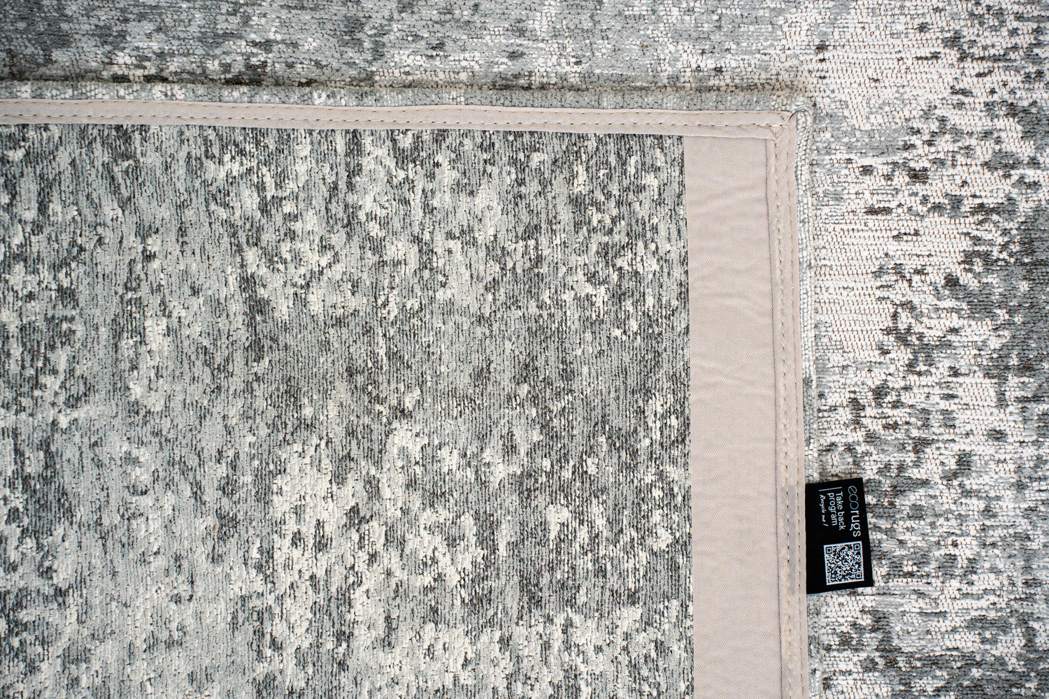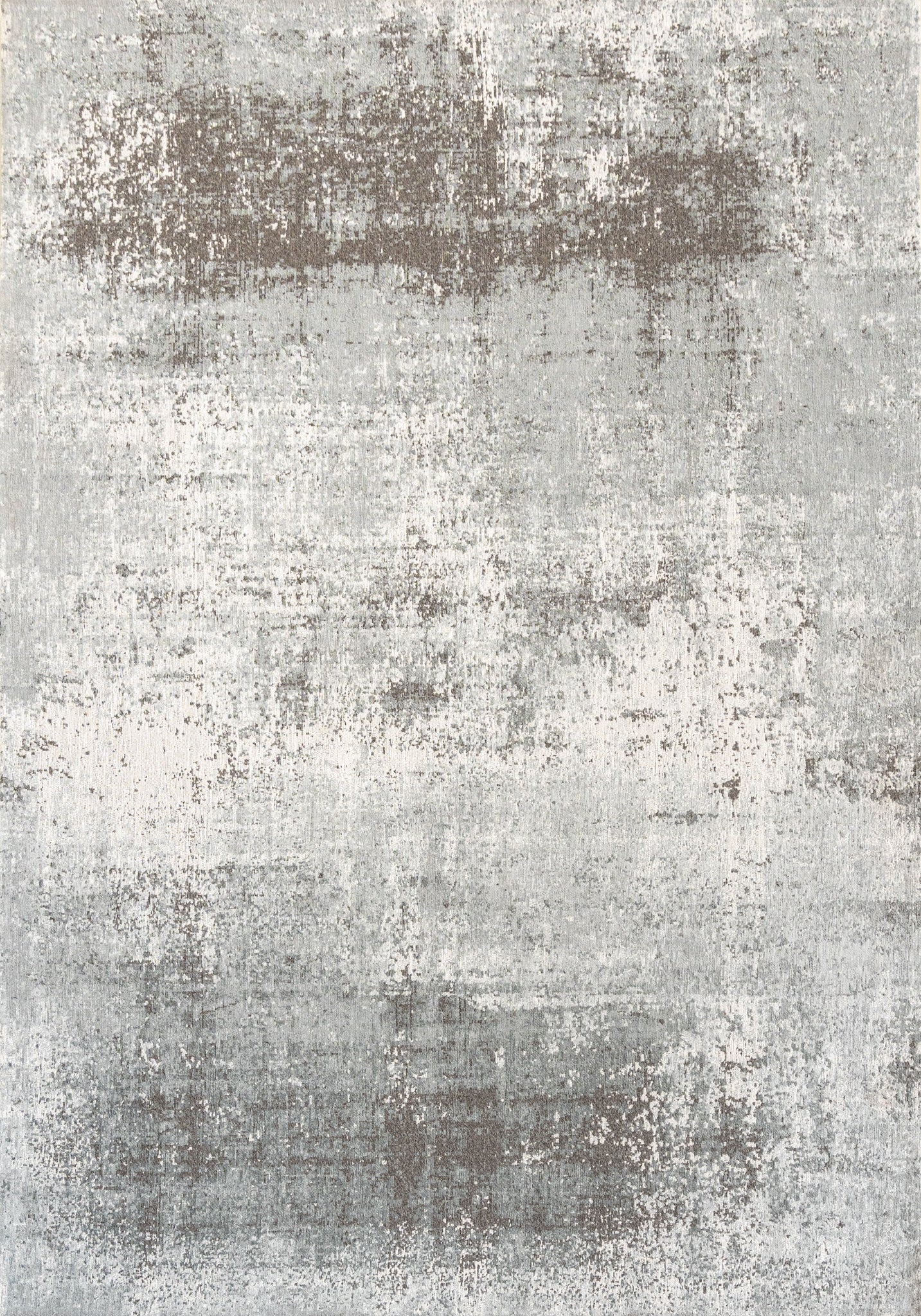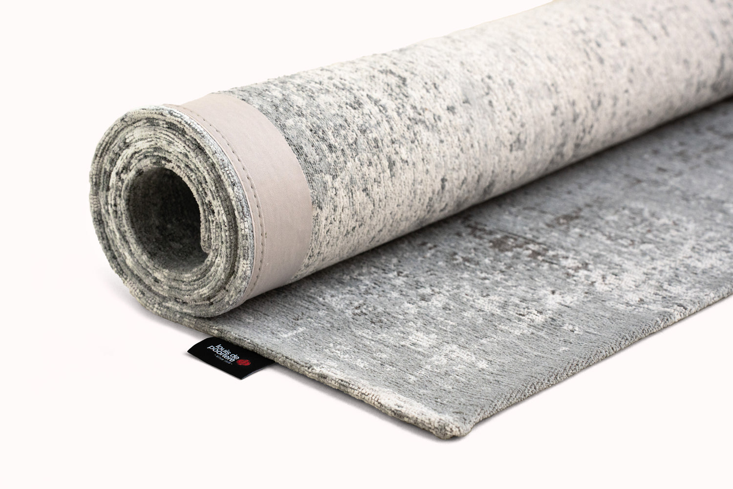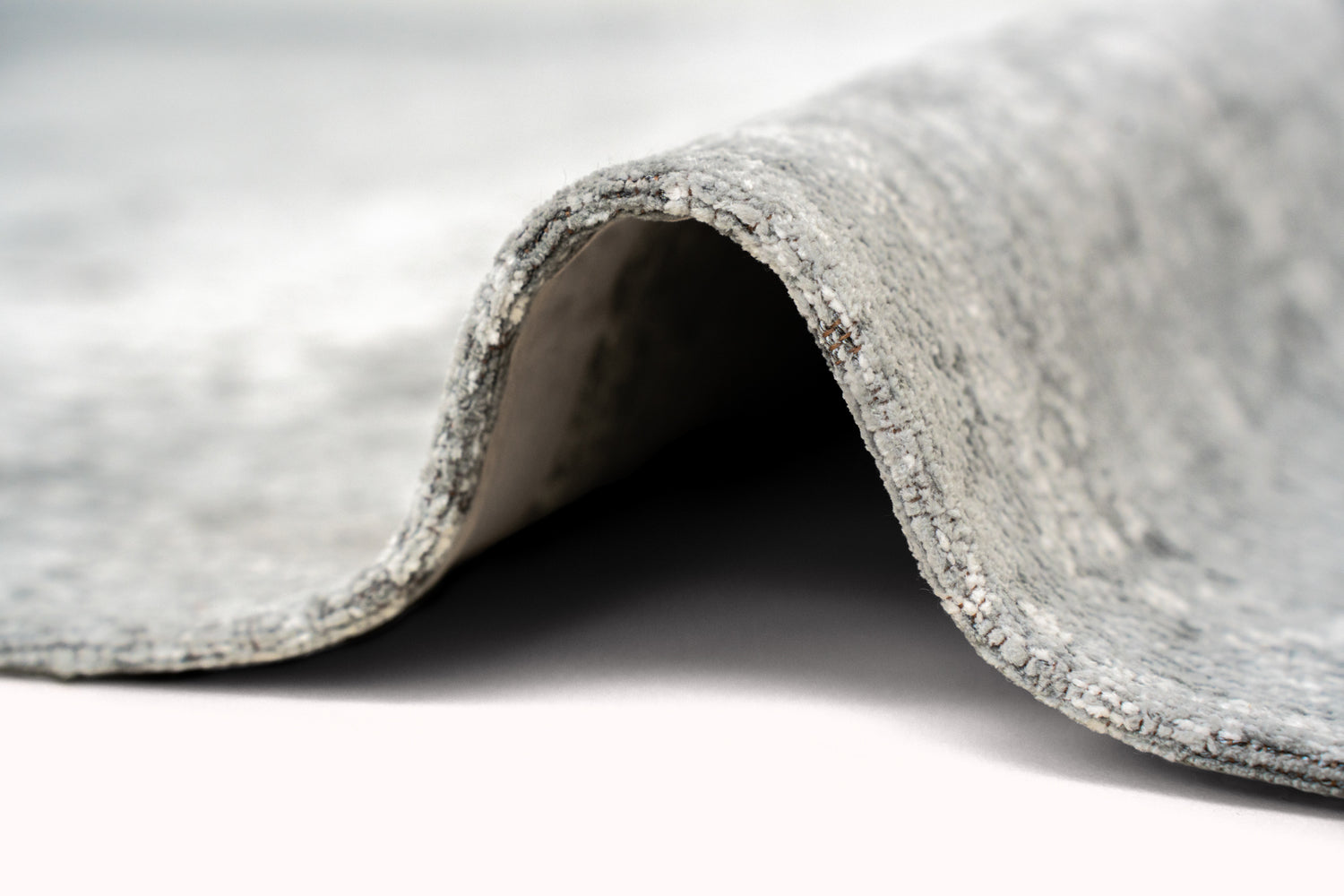 Its distressed design mimics the natural textures of planetary landscapes, creating a beautifully layered effect. The soft silver-grey base, blended with deep charcoal and hints of off-white, evokes the misty, atmospheric tones of Venus, making this rug a sophisticated yet understated statement piece.