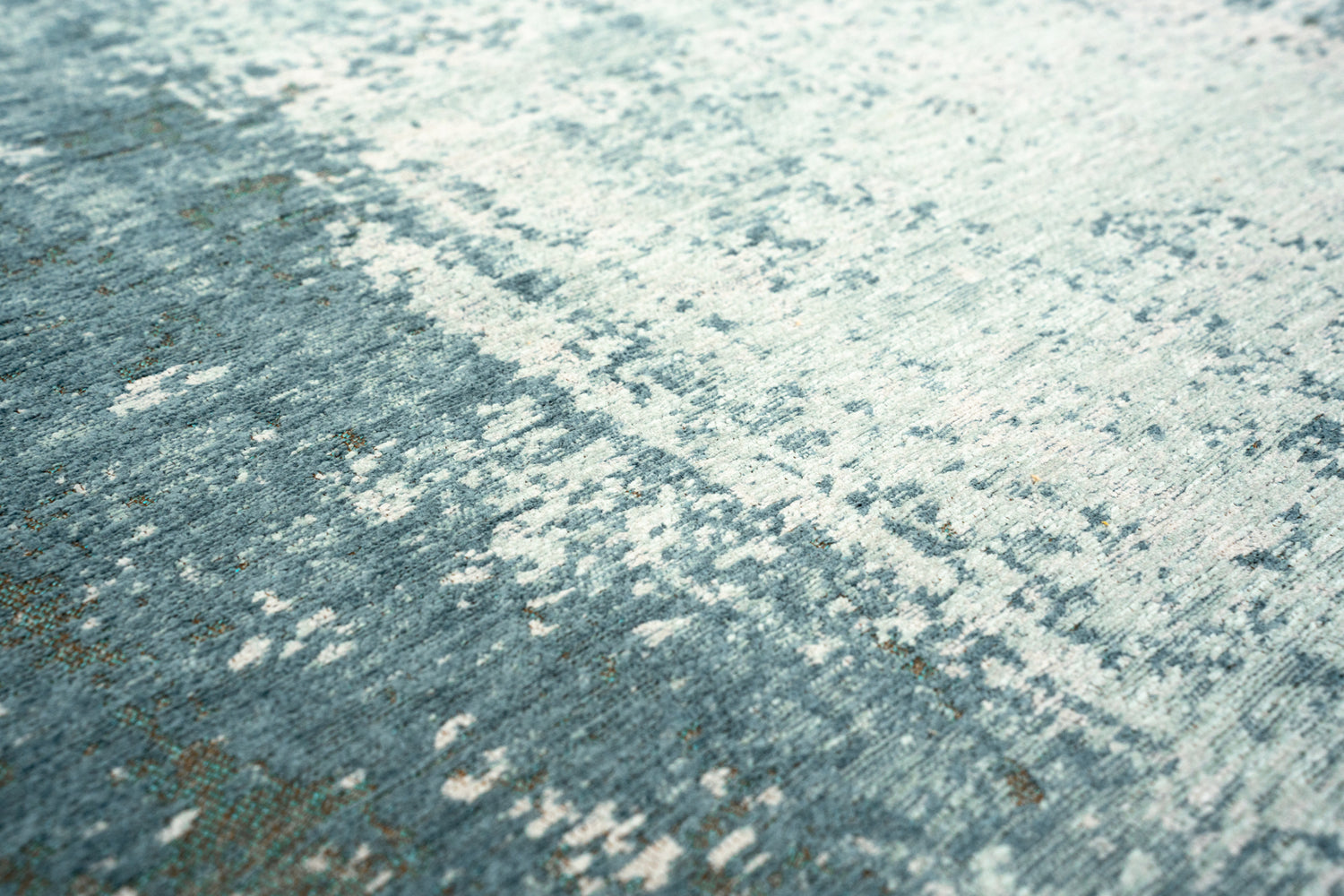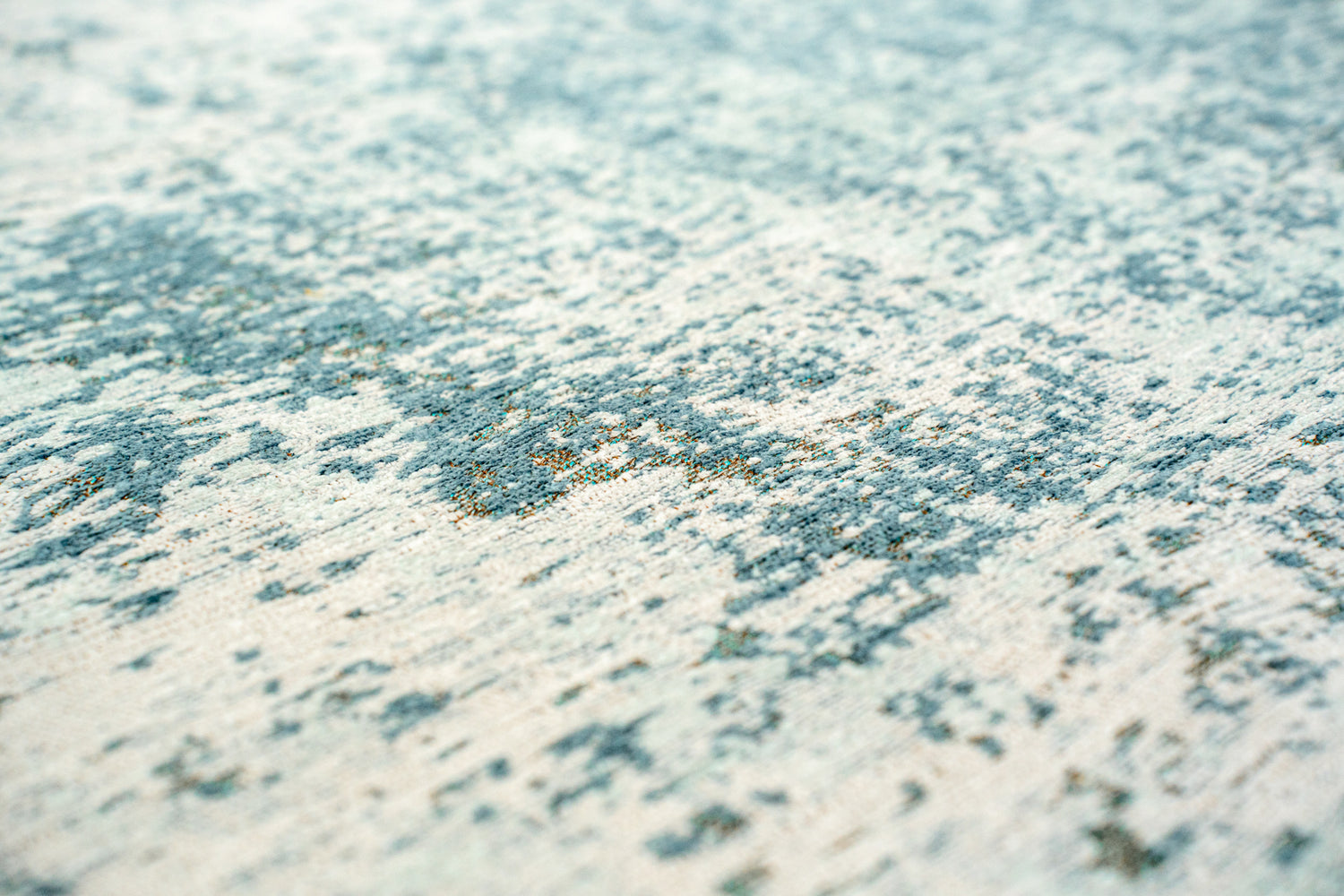 Its abstract distressed pattern mimics the shifting tones of water and sky, with a textured effect that adds depth and movement. The cool aqua blue and soft beige hues, blended with hints of muted grey, create a serene and sophisticated atmosphere, reminiscent of Neptune’s vast, mysterious beauty.