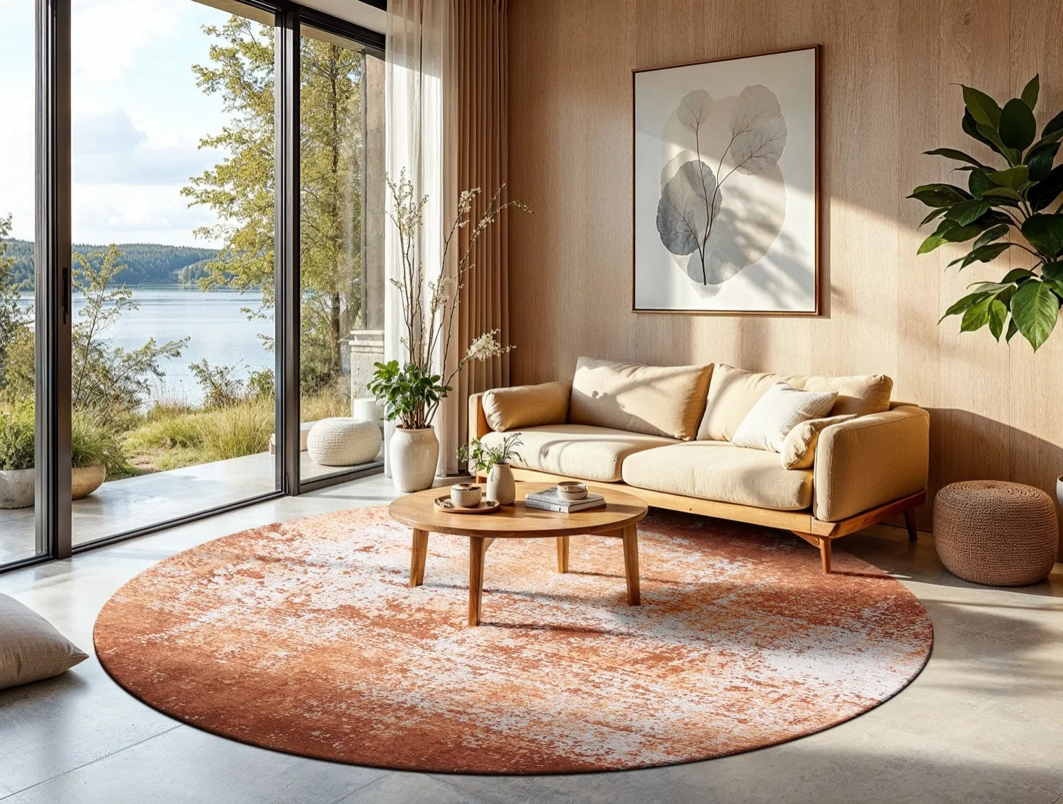 Ideal for modern, industrial, or earthy interiors, this rug pairs beautifully with neutral tones, warm wood finishes, and minimalist décor. Whether used as a bold focal point or a grounding element in a layered design, it brings warmth, energy, and a contemporary edge to any space.