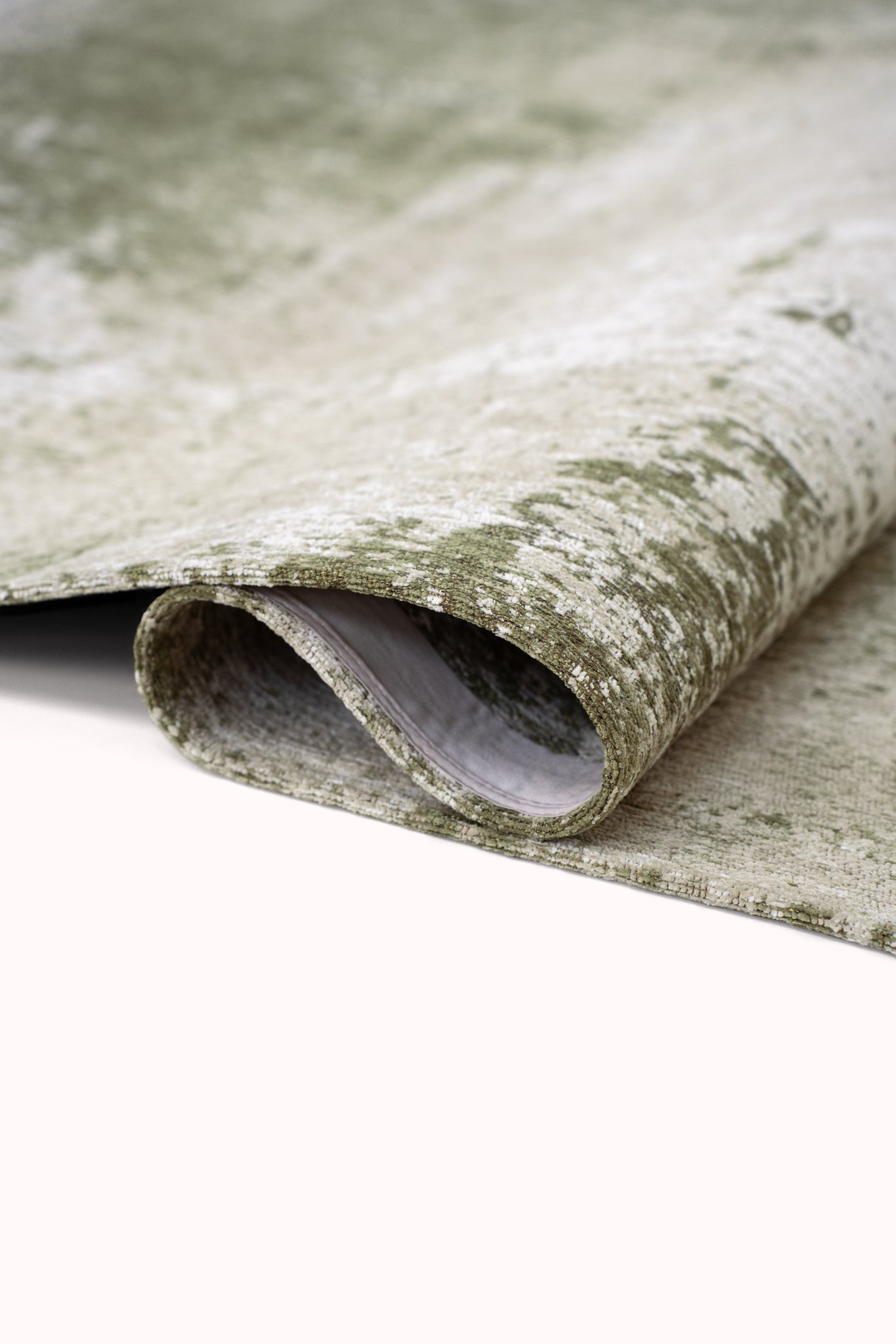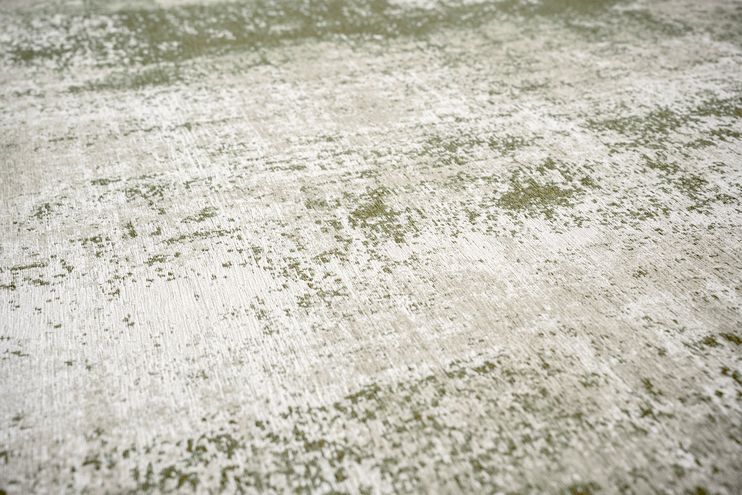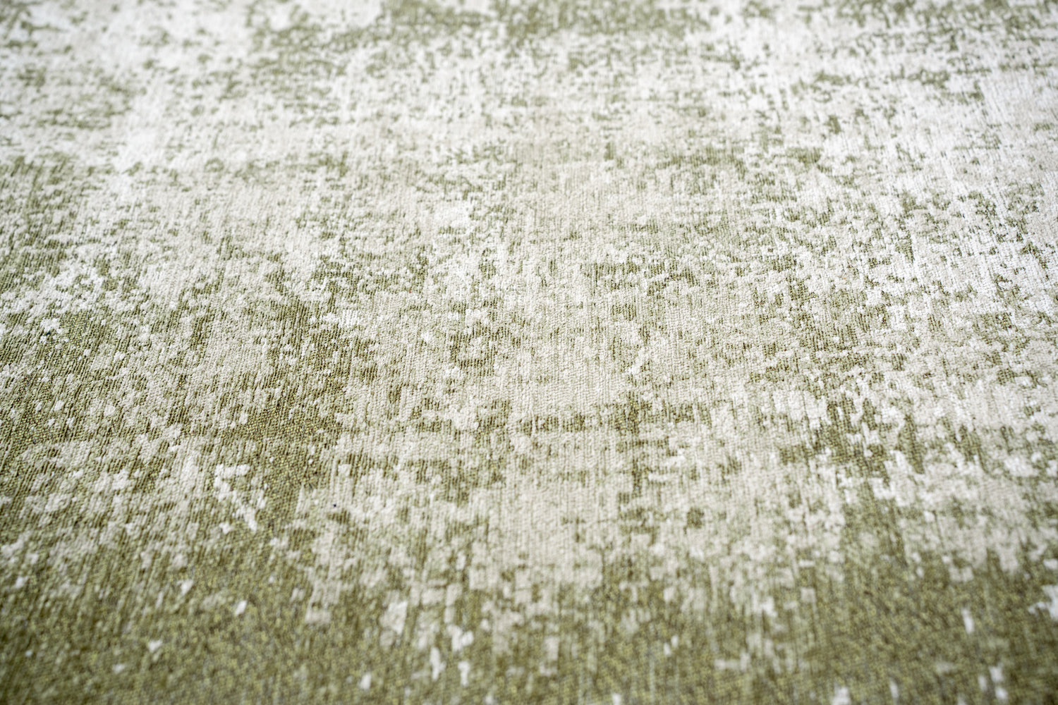 Its abstract distressed pattern blends soft beige with earthy moss green, creating a textured effect that evokes natural terrains and organic movement.