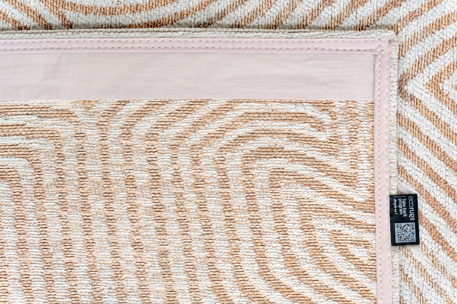 Made from 100% polyester, including 40% recycled fibres, this rug is a mechanically woven jacquard flatweave, offering a refined low-profile finish. The mix of warm neutrals makes it a versatile addition to bohemian, modern rustic, or minimalist interiors, beautifully complementing natural materials like wood, stone, and linen.