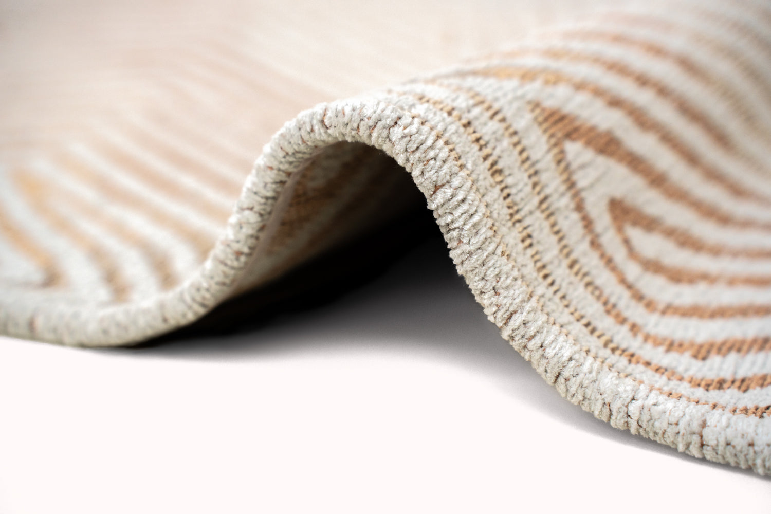Its intricate, free-flowing pattern mimics the organic movement of wind-swept sand, creating a soft yet dynamic effect. A palette of warm beige, soft terracotta, and earthy taupe gives this rug a natural, grounding presence, ideal for creating a relaxed and inviting atmosphere.