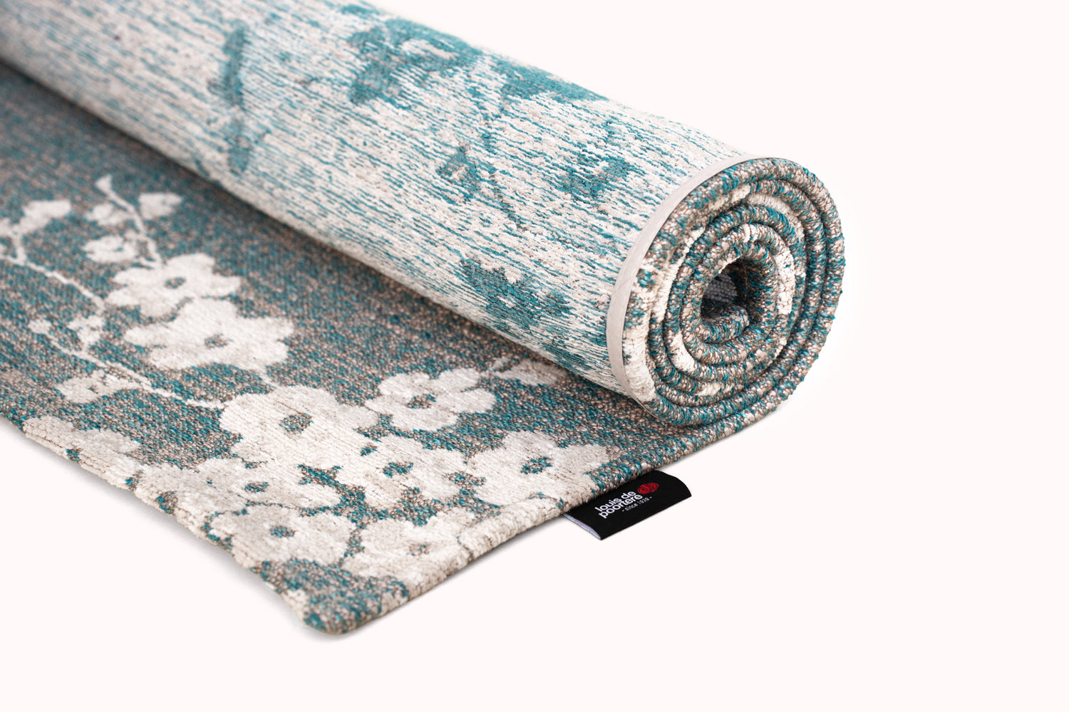 The Louis De Poortere Sakura Lake Blue 9850 Rug is a delicate fusion of nature-inspired beauty and timeless elegance.