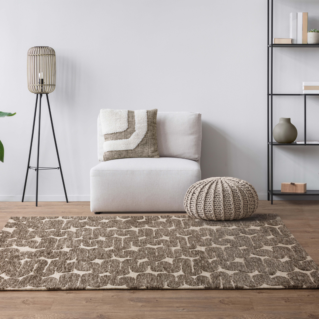The subtle high-low pile adds texture and depth, giving the design a dynamic, dimensional quality. Machine-woven for precision, this rug is perfect for contemporary, Scandinavian, and neutral interiors. Its earthy tones pair effortlessly with natural materials, soft furnishings, and minimalist décor.