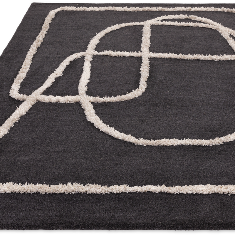 Bold and modern, the Matrix Infinity Charcoal rug makes a striking statement with its deep charcoal backdrop and free-flowing ivory line design. The abstract looping pattern adds a sense of movement and artistry, while the monochrome palette ensures it remains versatile and timeless.