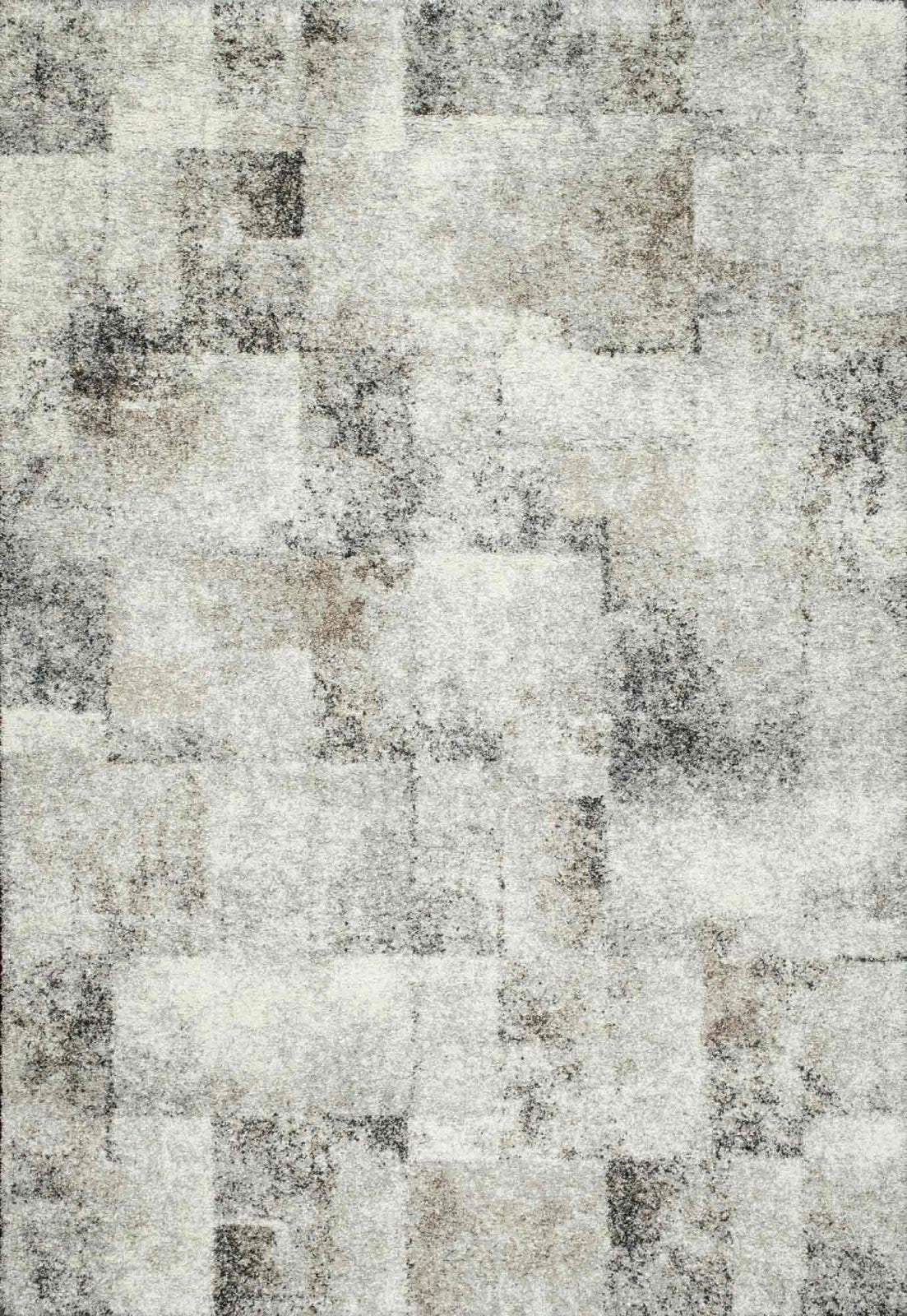 The Mehari 023-0298-6268 rug showcases a striking patchwork-inspired design, blending tones of grey, cream, taupe, and charcoal in a soft, textured palette. The subtle gradation of colour within each block gives the pattern depth and character, offering a modern take on a classic geometric look.