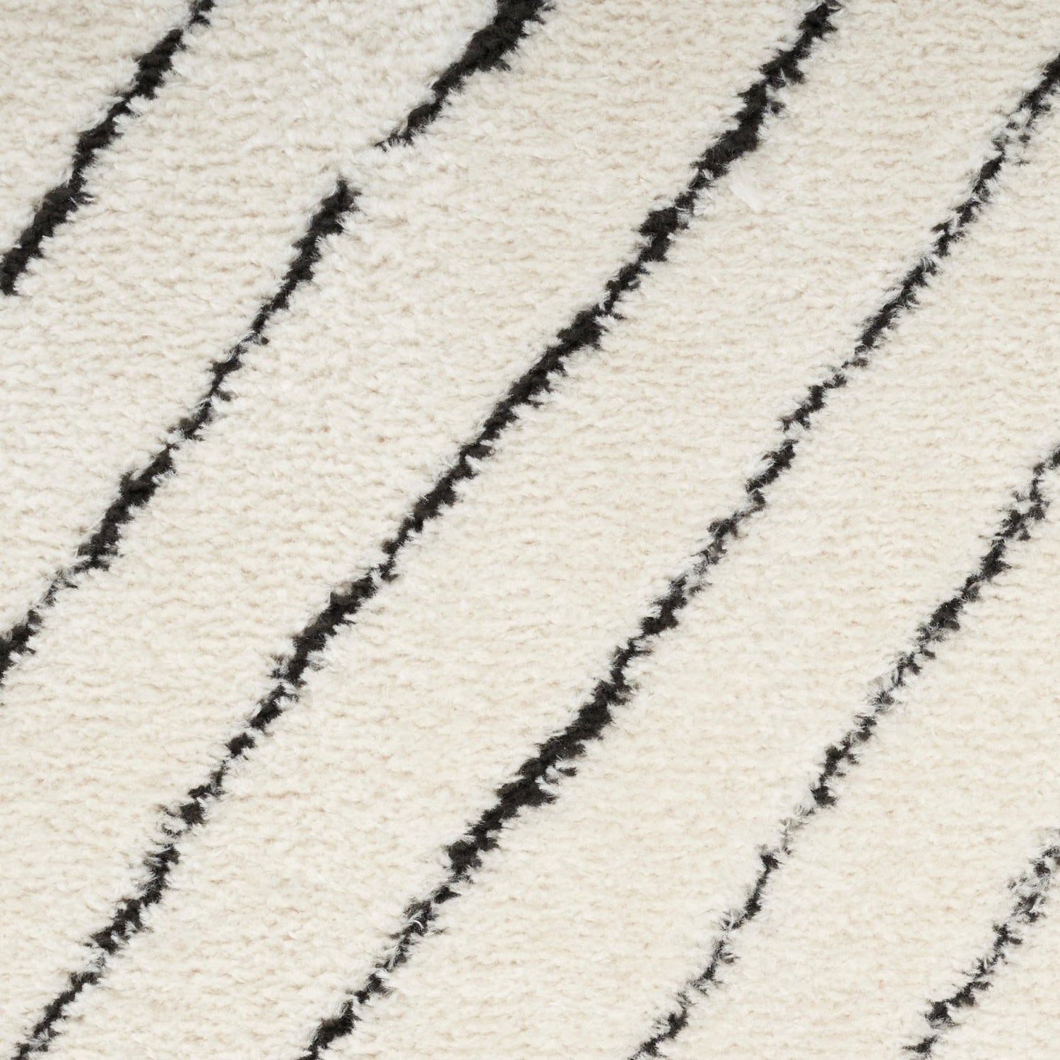 Featuring a black and white linear pattern, this cozy polyester rug is ideal for any room. Its medium-thick construction is low maintenance and easy to clean, adding a touch of warmth and elegance to your space!