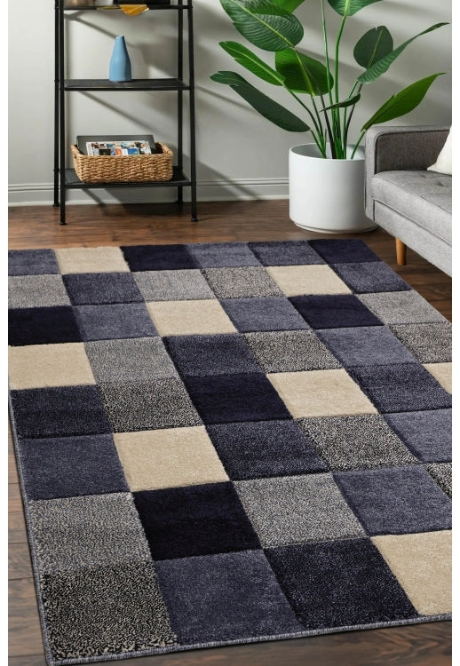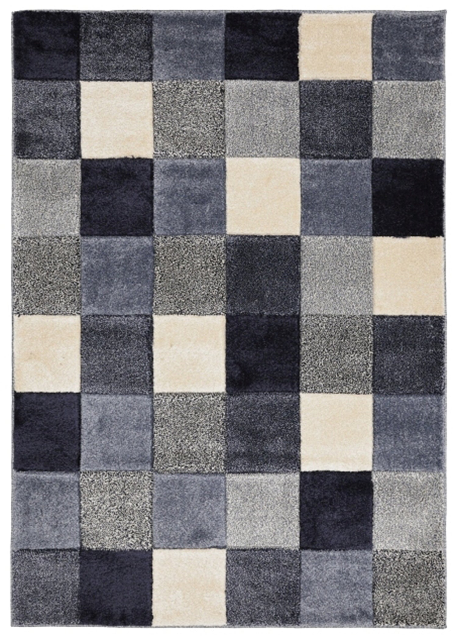 The Newport Blocks Blue Rug offers a contemporary patchwork of cool tones and textures, perfect for modern interiors. Featuring a grid of squares in navy, steel blue, cream, and grey, each block varies in texture, from smooth to slightly mottled, creating a layered look.