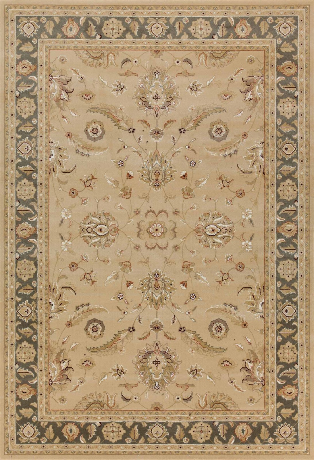 The Noble Art 65124-192 rug offers a soft, classic charm with its traditional floral medallion design set against a warm beige backdrop. Muted accents of sage, taupe, ivory, and rose weave through the intricate central pattern, creating a look that feels balanced and timeless. A deep green border, rich with scrolling florals and geometric motifs, frames the rug and adds a touch of contrast without overpowering the design.