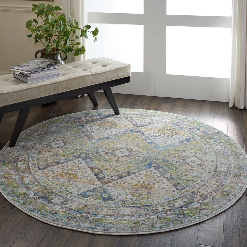 Nourison Ankara ANR07 Blue Green Circle Round Rug
