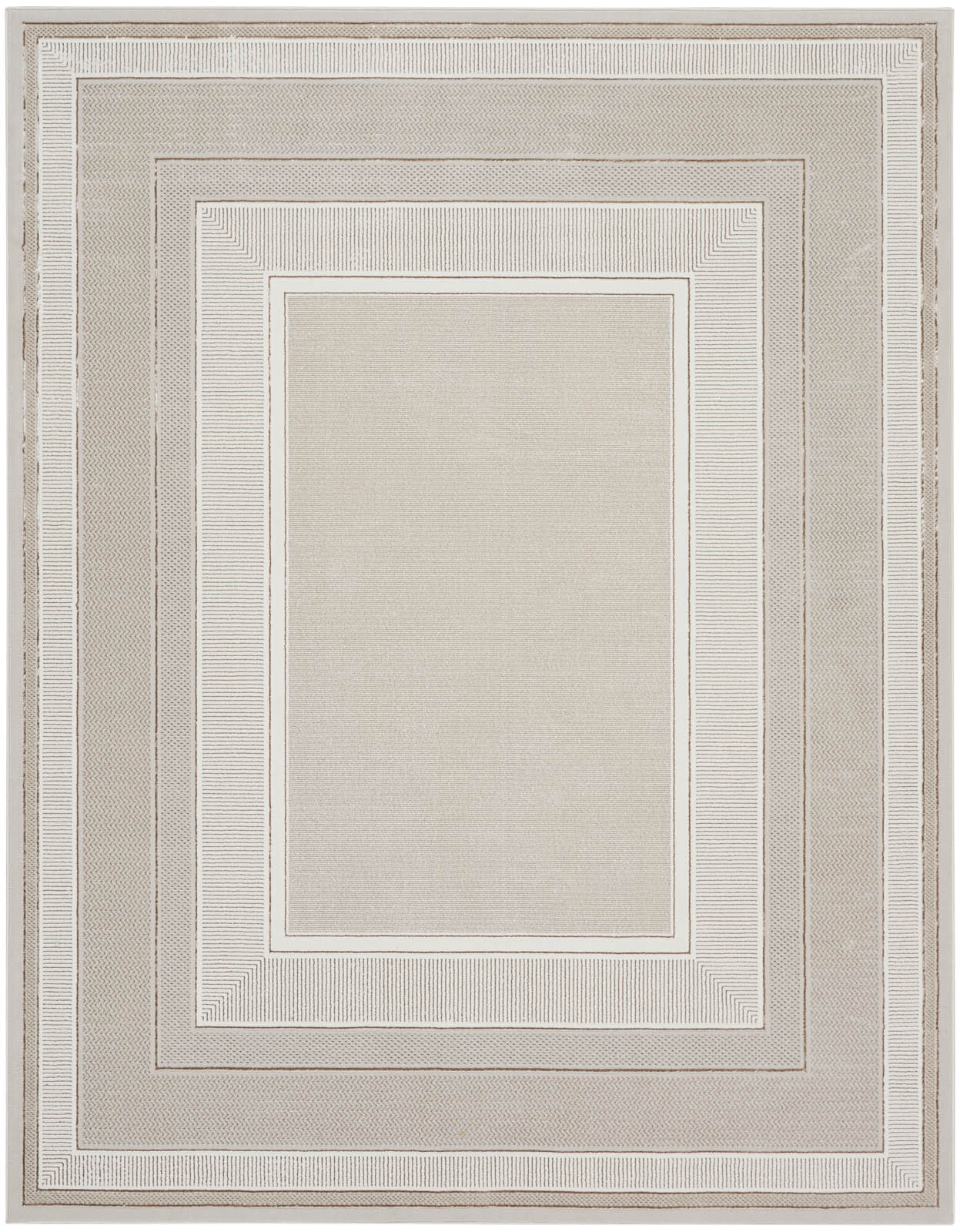 Bring a pop of glamor to your space with this stylish polyester rug from the Nourison Glitz Collection. With a shimmering abstract pattern surrounded by a geometric frame of silver, ivory and gold, it adds depth and texture to your décor. Enjoy a truly modern look with standout appeal.
