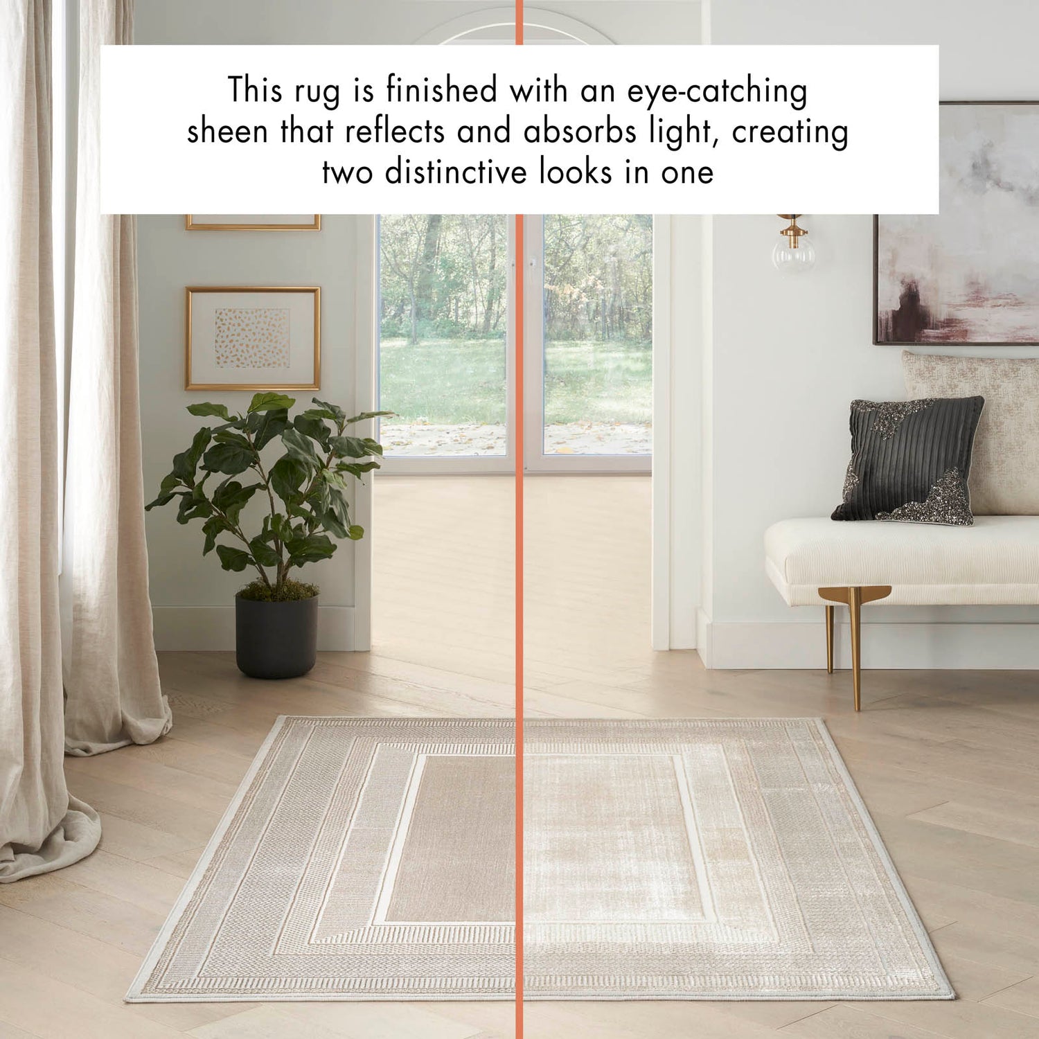 This rug’s high-sheen finish creates a striking dual-tone effect that changes with the direction of the pile - appearing lighter or darker depending on your viewing angle. This unique feature adds depth and character to any space.