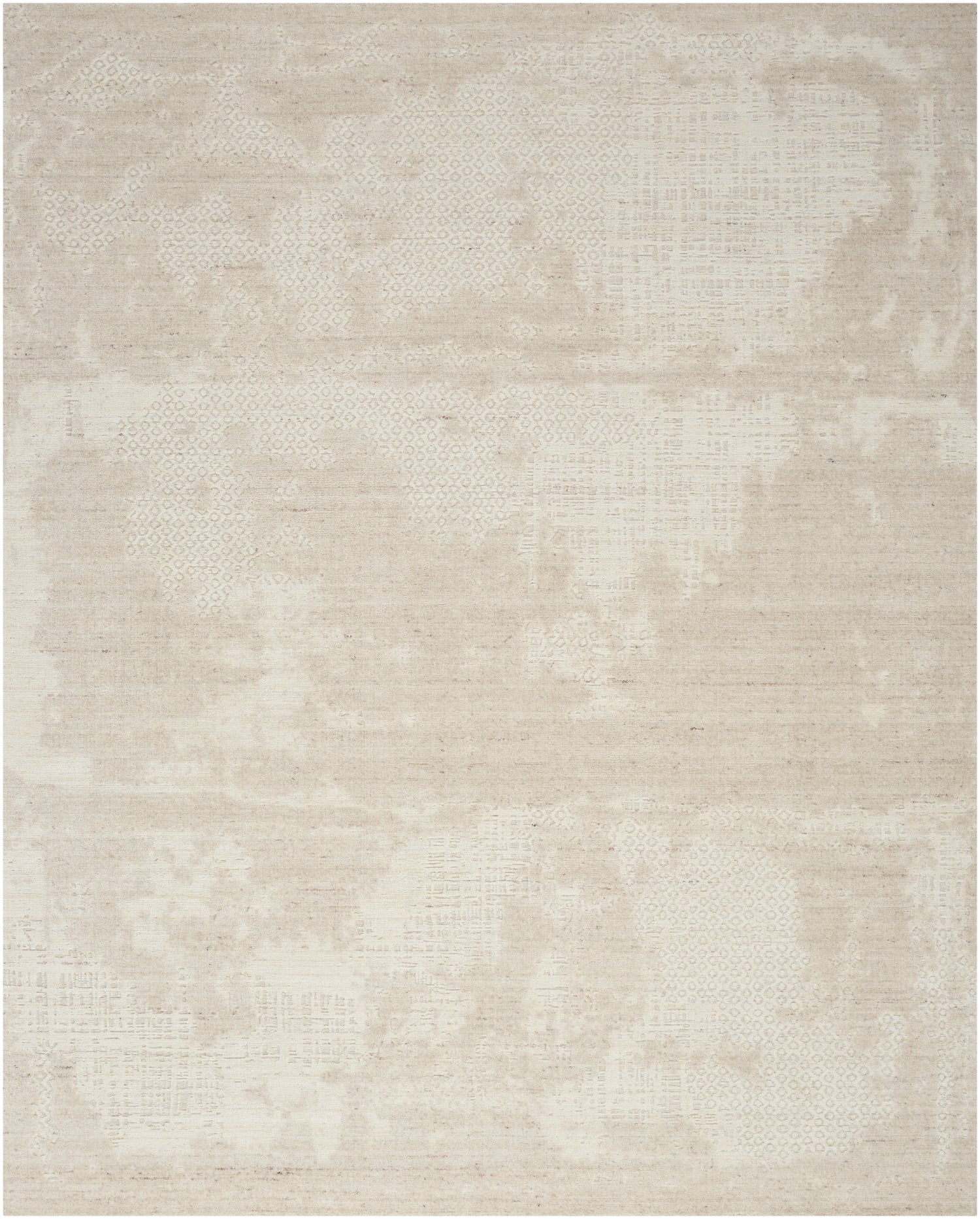 Its abstract design, layered with delicate geometric patterns and tonal variations, creates a beautifully subtle yet sophisticated look. The soft ivory palette enhances its versatility, making it a perfect foundation for a range of interior styles.