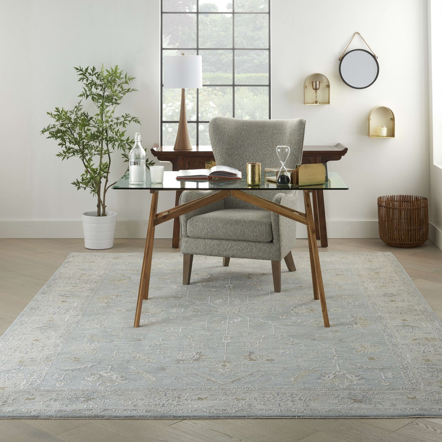 Lush, textural and elegantly understated, the traditional Persian area rugs of the Infinite Collection seem to take you back in time. Their intricate Persian floral designs are presented in an artfully faded palette of muted transitional tones that lend this entire collection a soft and dream-like beauty. The collection includes classic center medallion patterns, Persian garden patterns, and richly detailed ornamental borders. The subtle attraction of an Infinite area rug brings harmony to your bedroom, living room, dining room or family room – anywhere you want a finishing touch of serene elegance. The power-loomed, poly-blend pile has a luxurious hand feel with comforting texture.