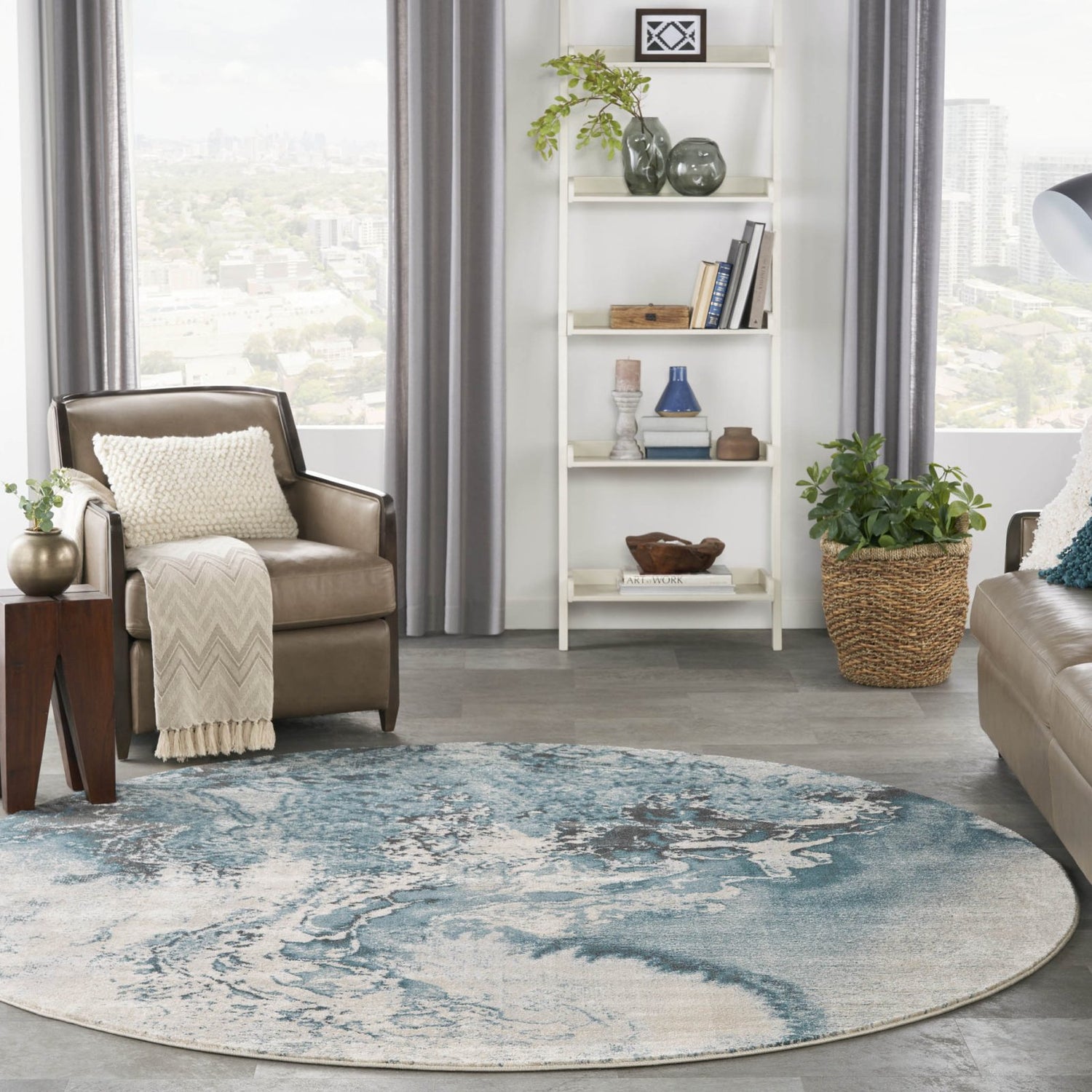 Nourison Maxell MAE08 Ivory Teal Round Rug