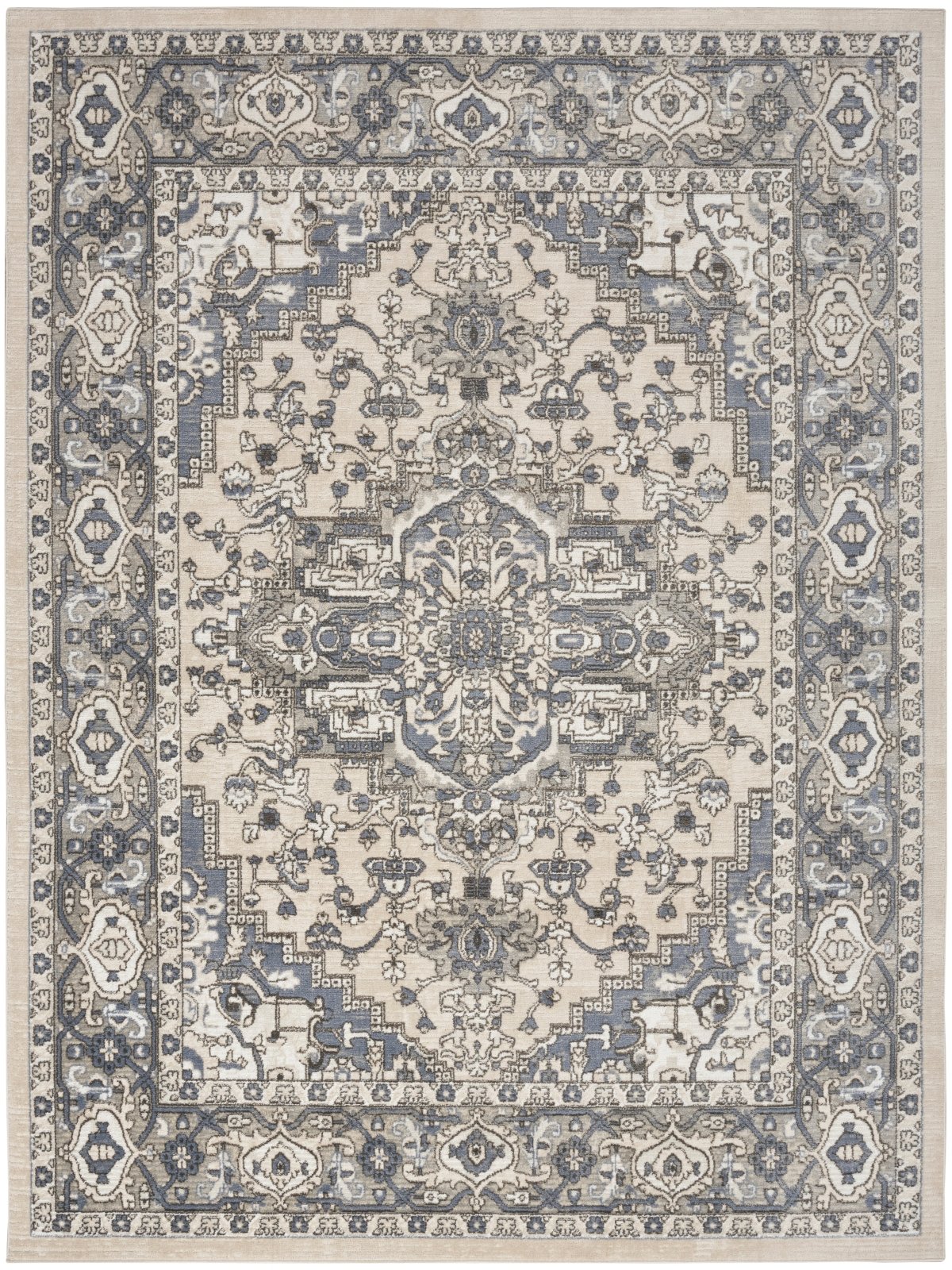 The Nourison Quarry QUA05 Ivory Blue Rug brings classic elegance to your home with its intricate Persian-inspired design.
