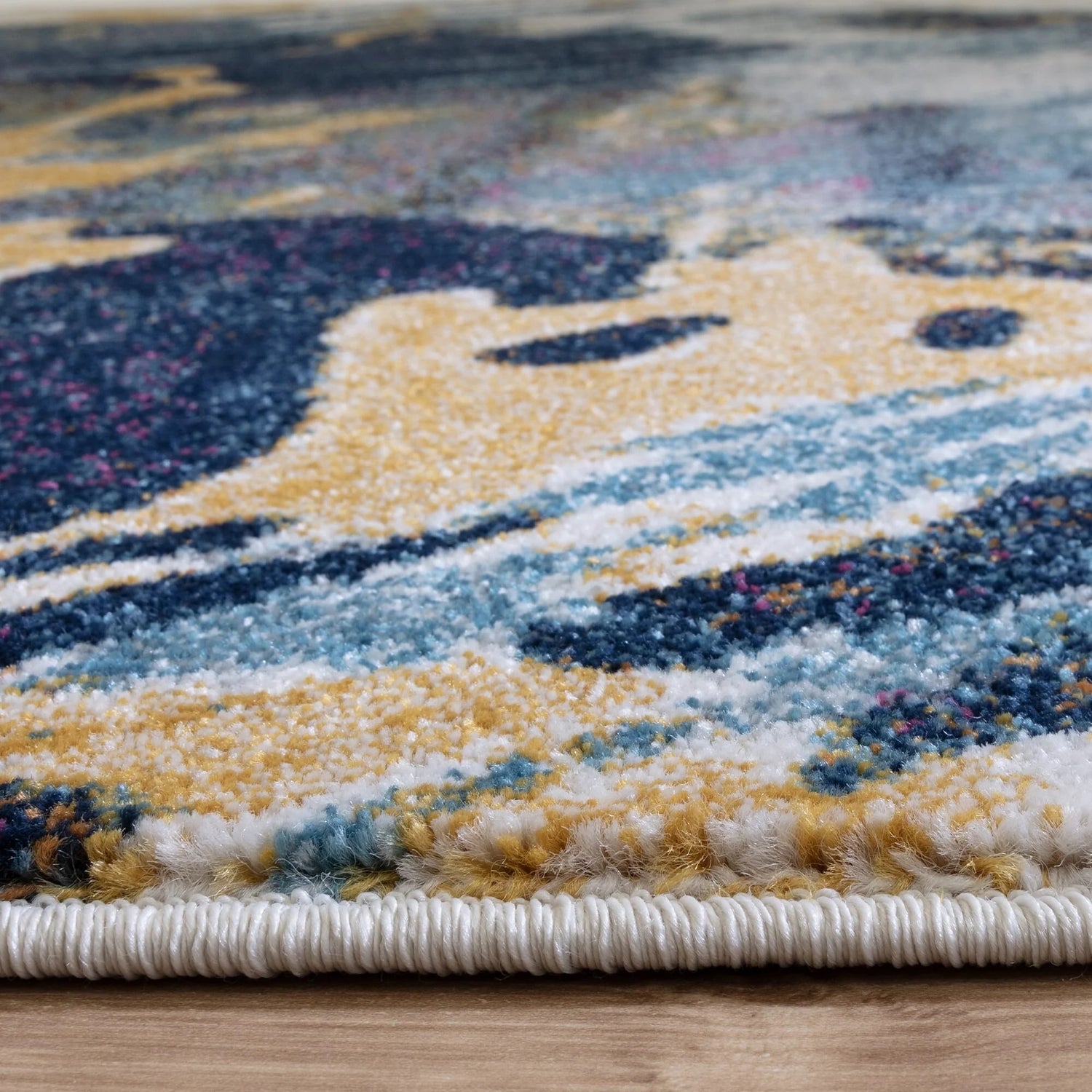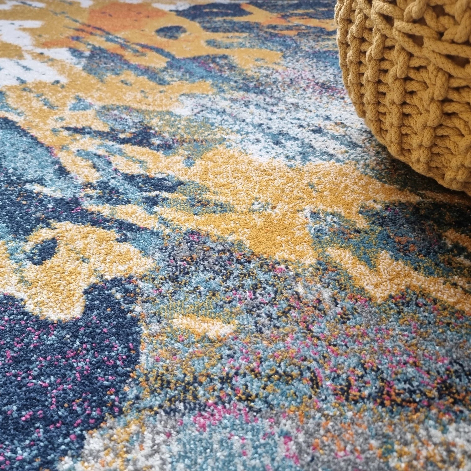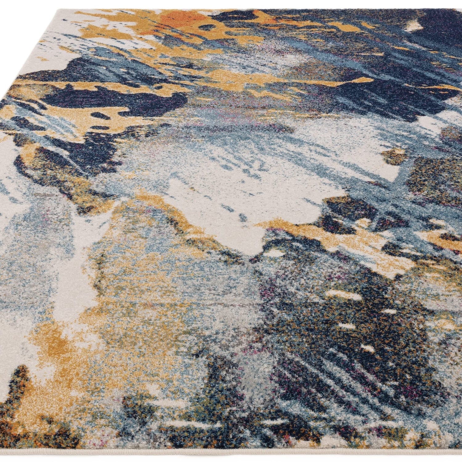 The Nova NV41 Sonic Rug brings bold energy and expressive style to modern interiors. Machine-woven from 100% polypropylene, it features an abstract design with sweeping tones of navy, golden yellow, and ivory that create the feel of dynamic brushstrokes in motion.
