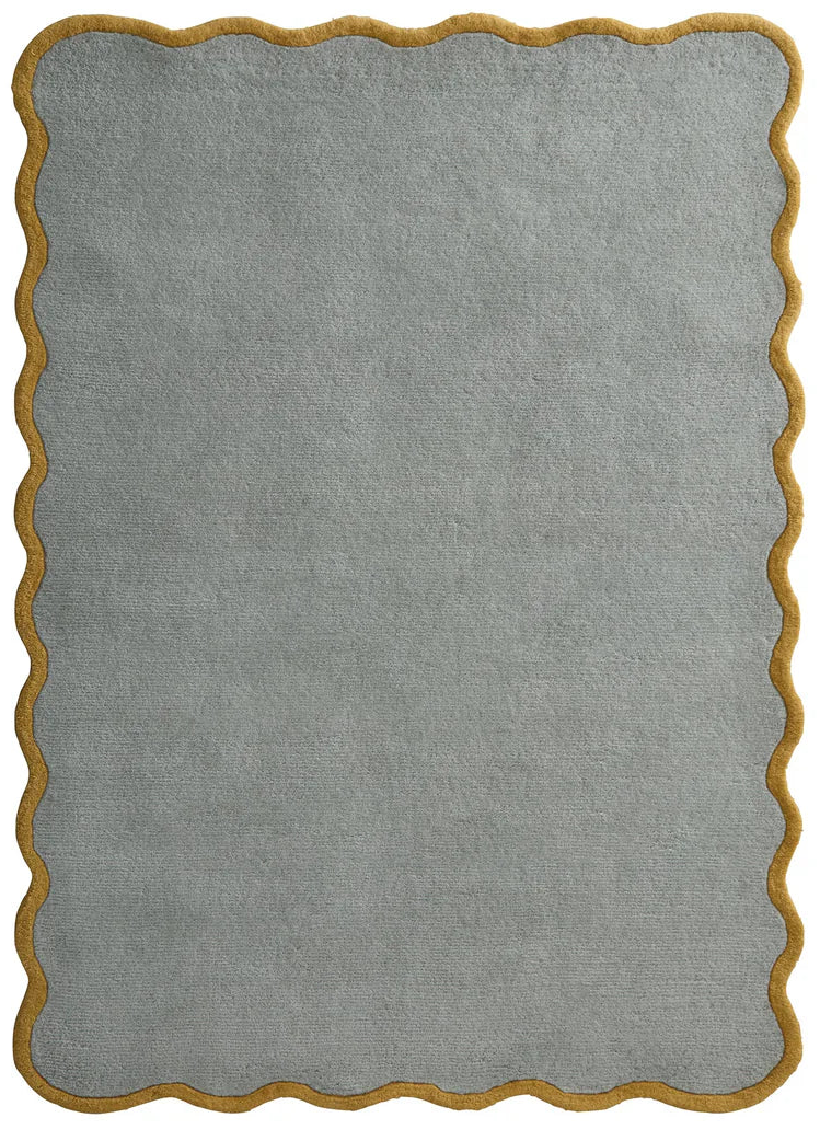 The Origins Scalloped Elsie Duck Egg/Ochre Rug introduces a charming take on modern simplicity, pairing a soft duck egg centre with a warm ochre scalloped outline. The cut out border adds a gentle wave-like detail that lifts the design without overwhelming it, making this a subtle yet characterful addition to any living space.