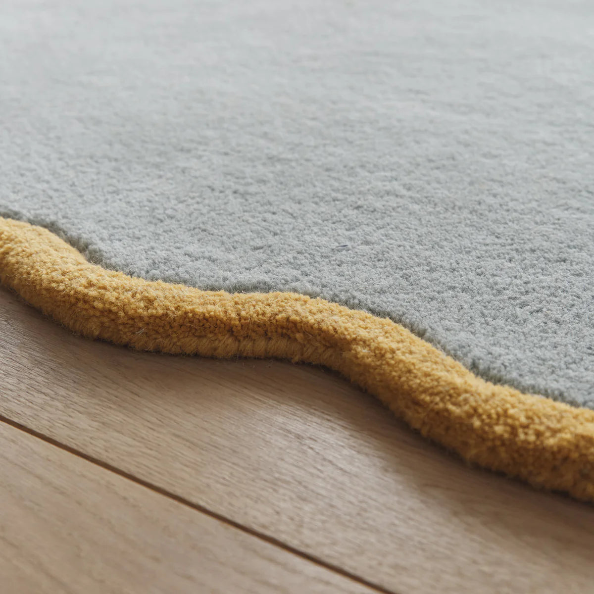 Hand-tufted from pure wool, the rug has a naturally cushioned feel underfoot and a dense, even pile that sits comfortably in both relaxed and refined interiors. The careful carving along the scalloped edge enhances its shape while keeping the overall look clean and understated.