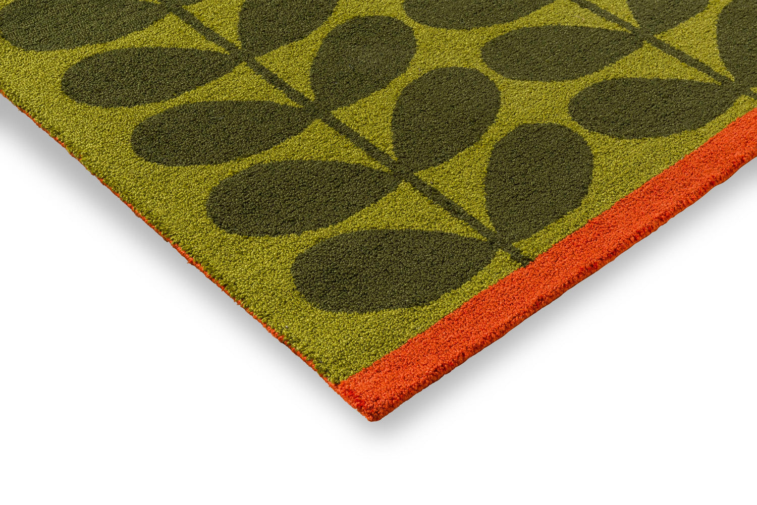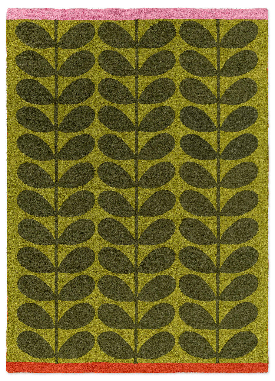 Featuring the instantly recognisable stem motif in a tonal olive green palette, this rug balances playful pattern with modern elegance. Contrasting pink and orange borders add a fresh pop of colour, enhancing its cheerful yet refined feel.
