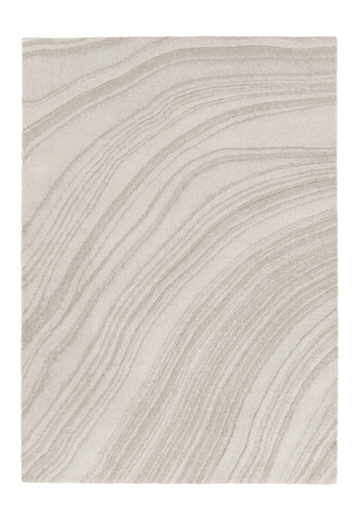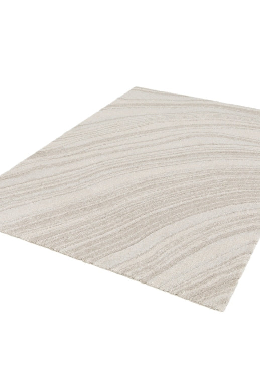 Its delicate, wave-like pattern mimics the organic movement of water or wood grain, creating a soothing and elegant aesthetic. The soft, neutral tones in shades of beige and cream enhance its tranquil appeal, making it a versatile addition to any interior.