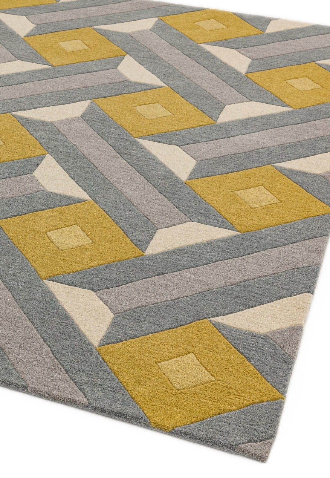Whether vibrant or neutral, let our Reef collection inject both character and colour into any living space. With its bold geometric pattern executed in ochre-yellow and grey, this Motif rug captures a retro-inspired vibe. Hand-tufted in India, the mid-height pile creates a slightly loftier look and feel, while the pure wool construction is not only durable, but has natural thermo-regulating qualities that keep it warm in winter and cool in summer.