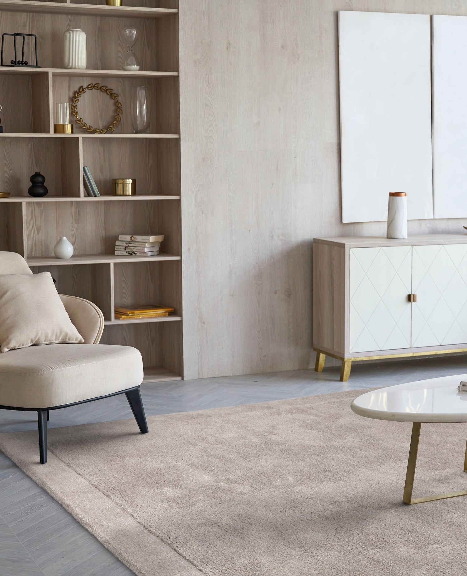 The low-pile border and raised centre are hand-carved, creating a subtle yet striking design that enhances the visual depth of any room.