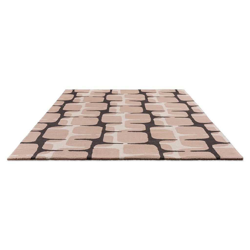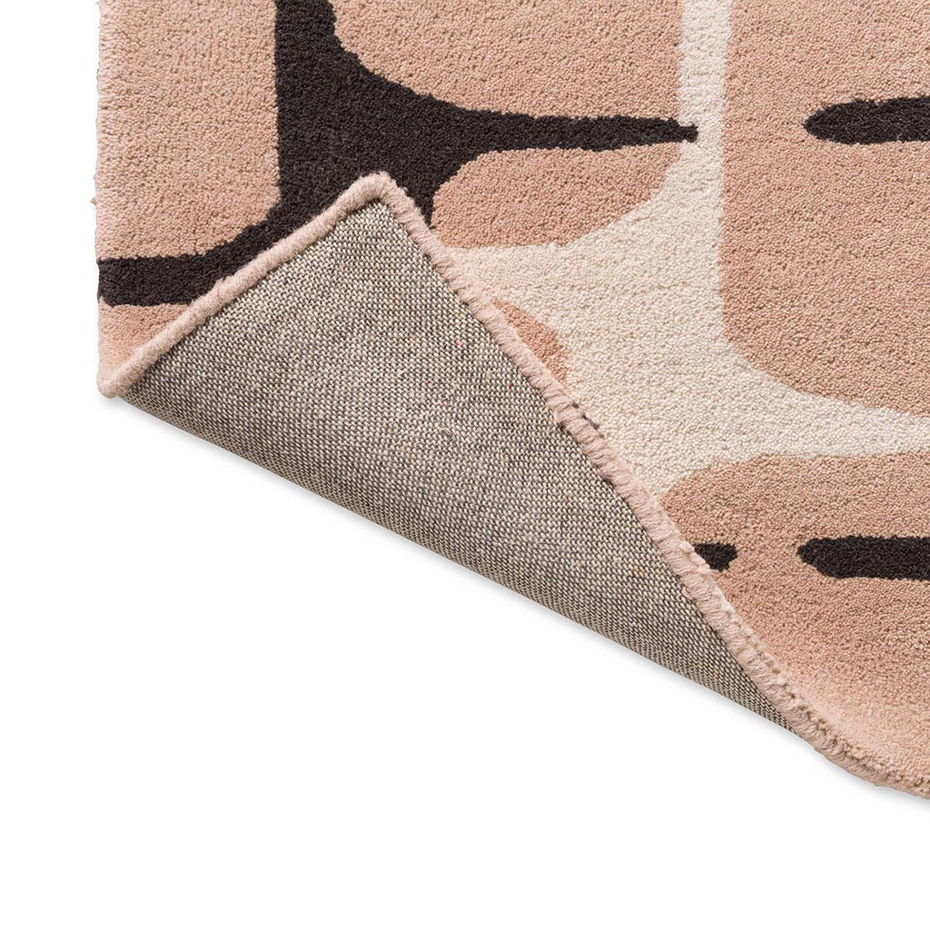 The Scion Going Lohko Dusk 123201 Rug combines mid-century charm with modern elegance, showcasing soft dusk-pink blocks interlinked with bold charcoal accents on a warm neutral base. The flowing geometric design feels playful yet refined, adding a stylish rhythm to the floor.