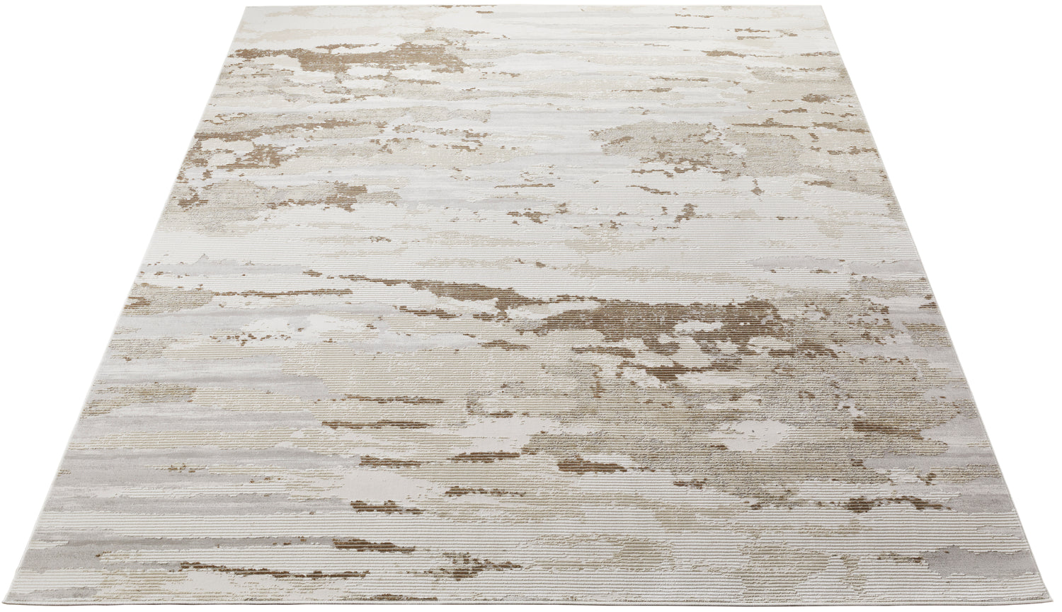 Crafted with a high-low texture, this rug plays with depth and dimension, giving the abstract design a tactile richness that catches the light beautifully. The machine-woven construction ensures a sleek, fine finish that holds its form while adding a layer of visual interest to your space.