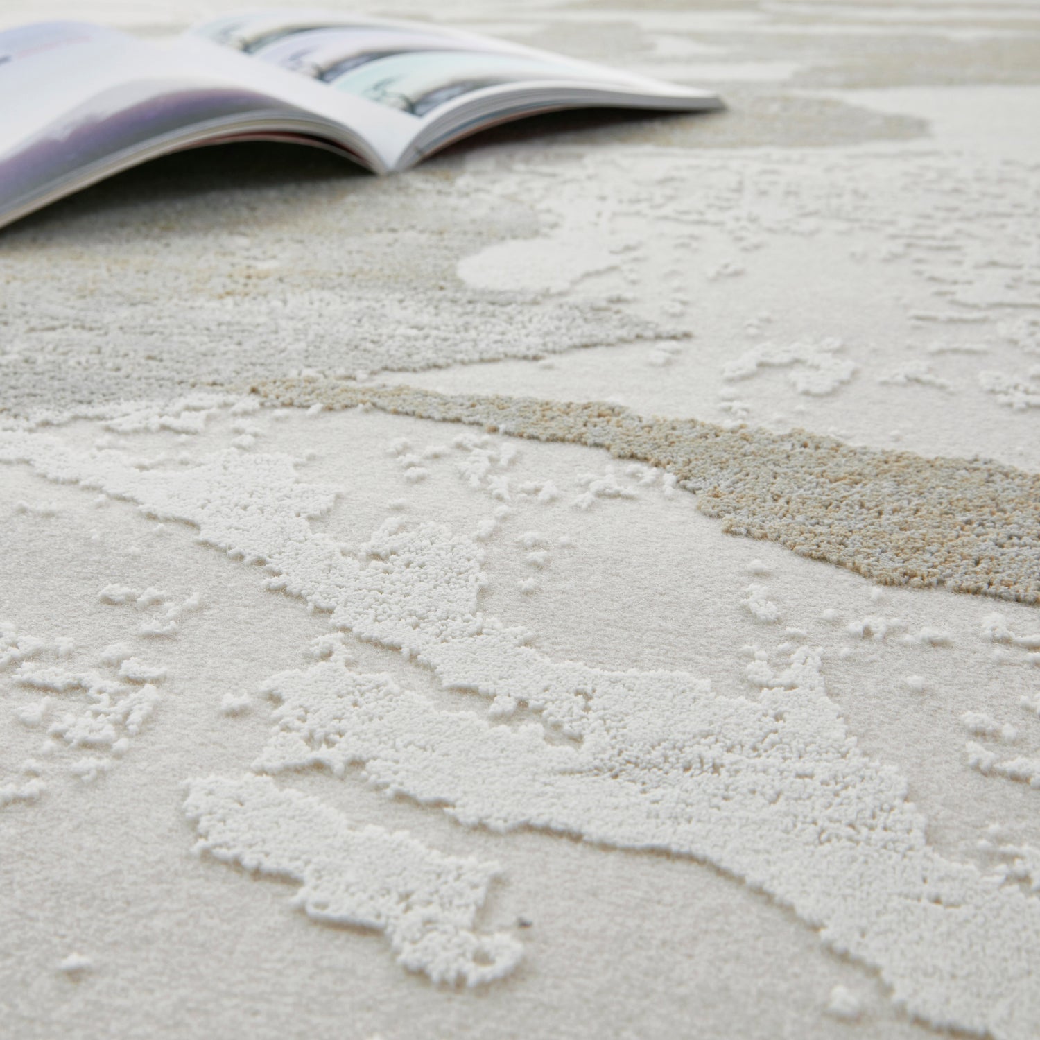 This versatile rug works beautifully in neutral lounges, elegant bedrooms, or serene hallway settings. Pair it with cool-toned furniture, pale wood, or natural materials to complement its understated elegance. A stylish choice for interiors that lean towards minimalism, modern comfort, or tonal harmony.