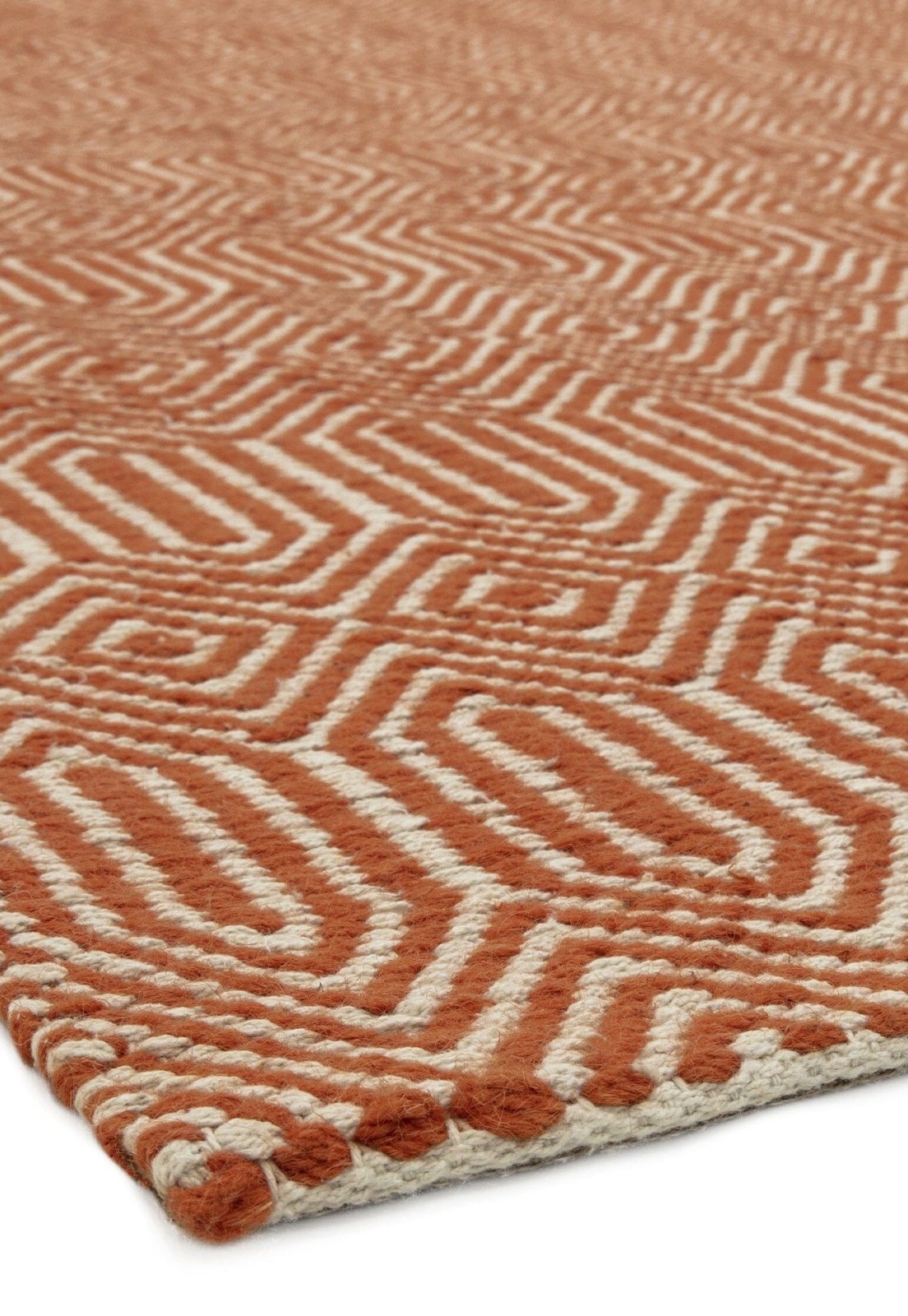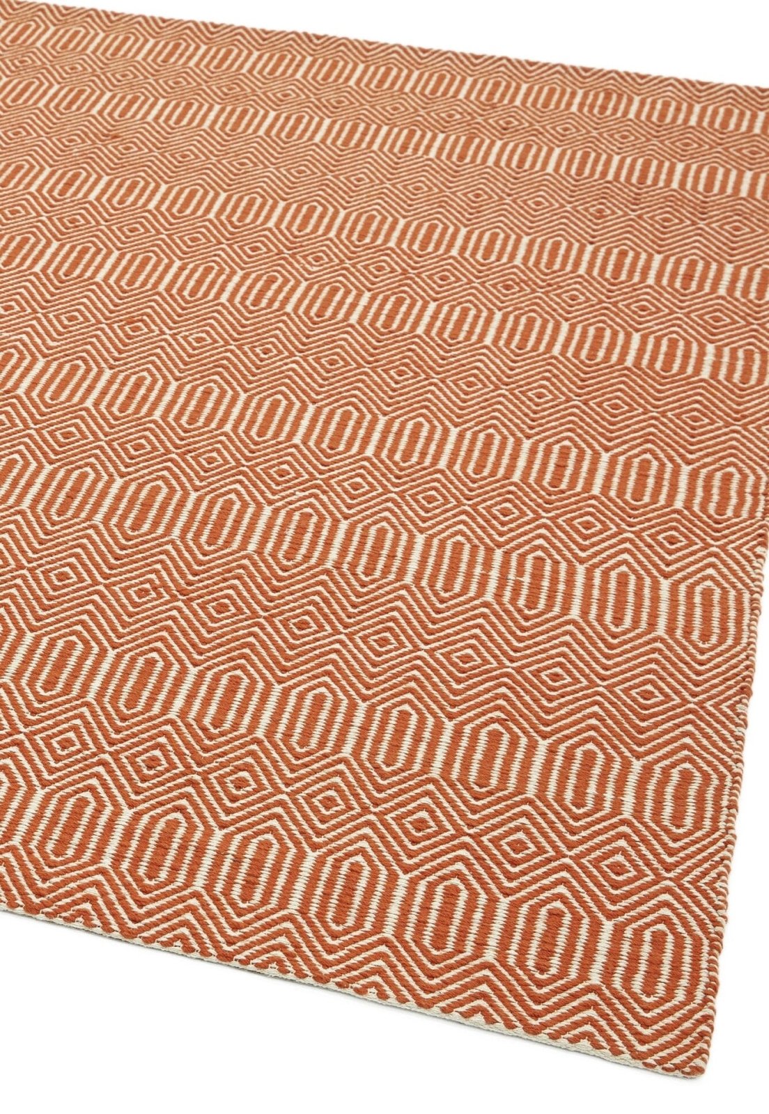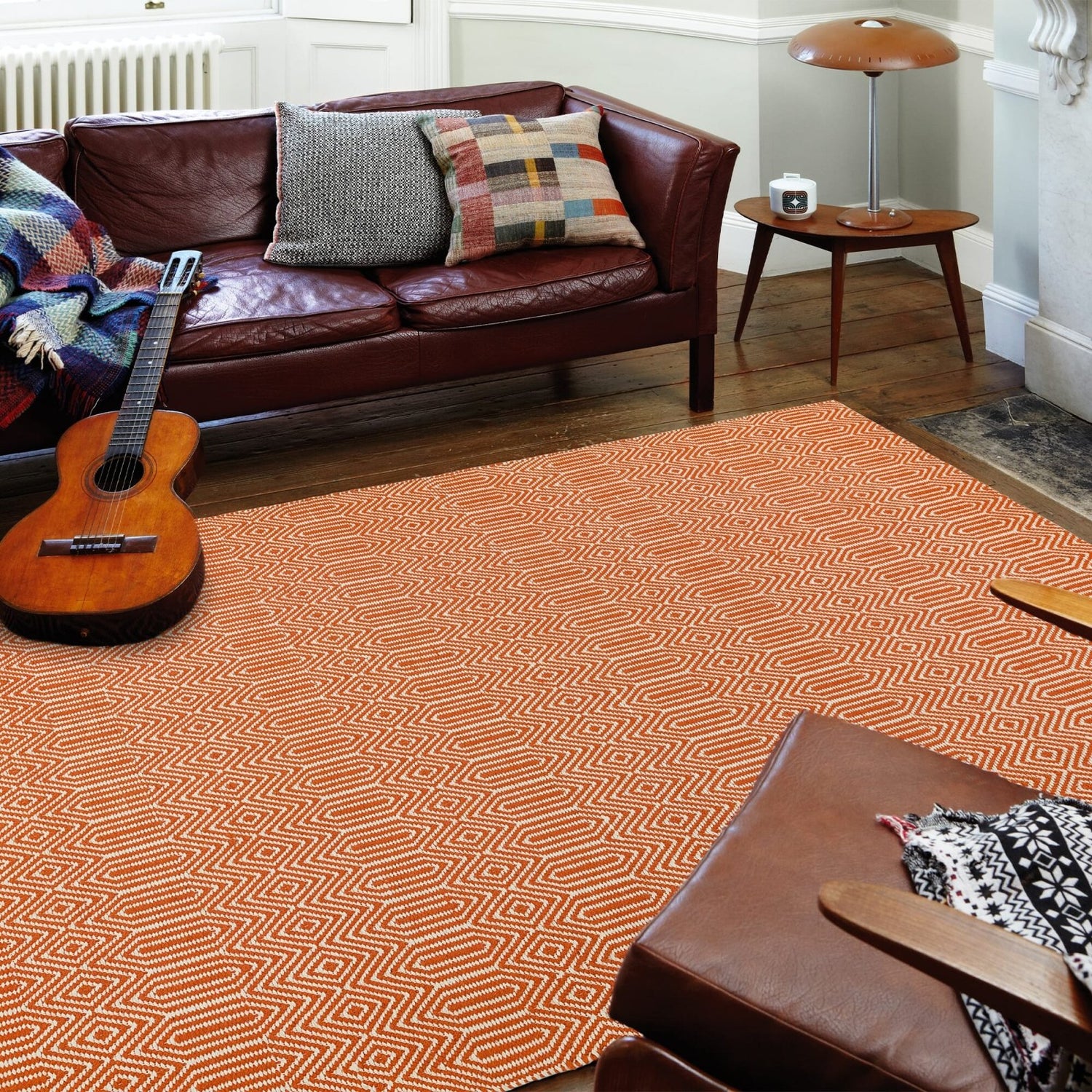 With its geometric pattern and versatile selection of shades, our Sloan collection is a great choice for both classic and contemporary interiors. This best-selling rug is hand-woven in India from a natural cotton and wool blend that enhances its traditional, crafted aesthetic. The simple flatweave pile is not only highly durable and ideal for heavy traffic areas, but provides the perfect base for the intricate duo-tone design. Let its vibrant orange hue add instant impact to any room.