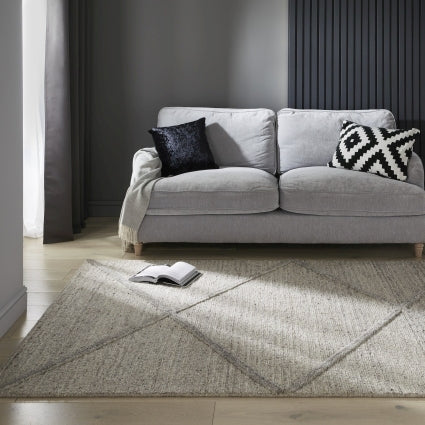 Crafted from soft New Zealand wool, this rug has a beautifully organic feel, with its natural grey and beige hues making it a versatile choice for contemporary, Scandinavian, or rustic spaces.