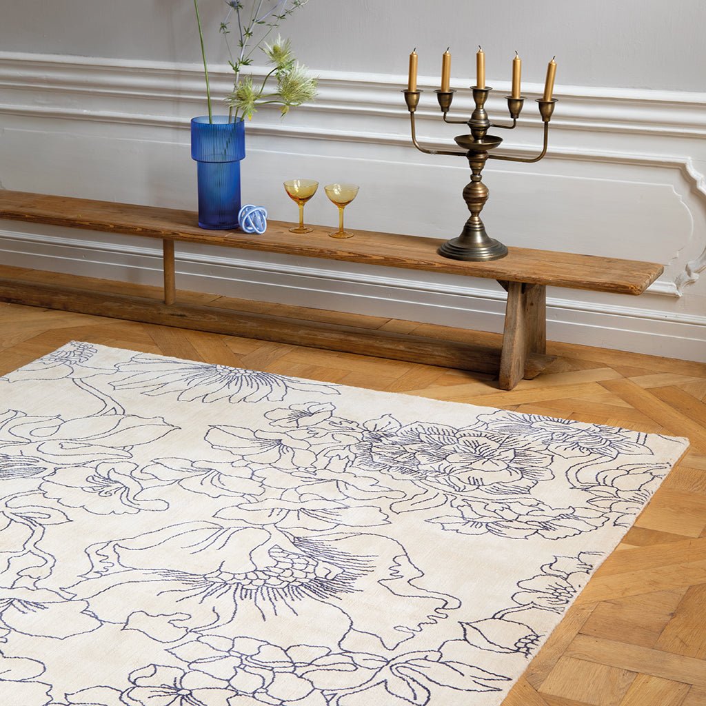 Printed by experts in India on 100% cotton, with a loop pile height of 8mm for a luxurious underfoot feel, perfect for living room and bedroom areas, wherever you want to make a statement.