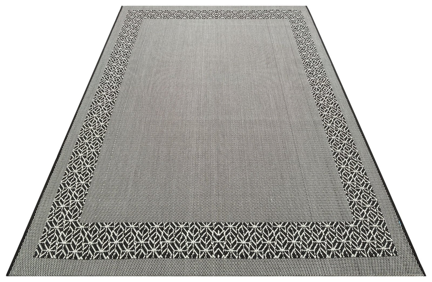 Made with 100% polypropylene, this rug is weatherproof and stain-resistant, making it a practical choice for high-traffic areas. From the chic border design to the easy maintenance, this rug is perfect for any modern lifestyle. Available in two sizes.