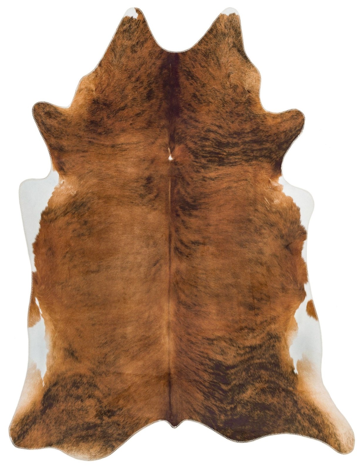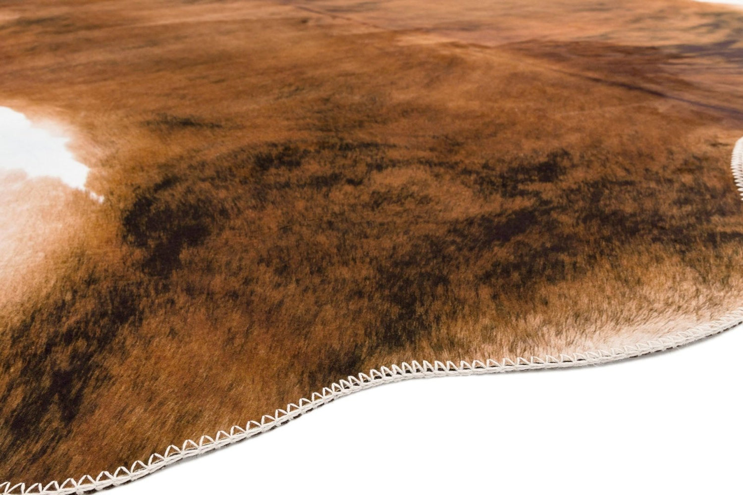 Digitally printed faux cowhides on a polyester anti-slip base.
