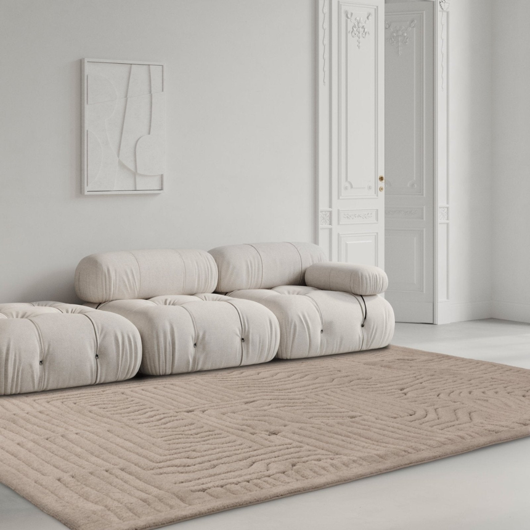 The Valley Natural Route Rug offers a sophisticated blend of texture and design, featuring an intricate maze-like pattern created by its high and low pile. The organic lines add a touch of visual interest, making it a subtle yet striking addition to any room. The natural, earthy tone ensures this rug complements a wide range of interior styles, whether you're aiming for a modern, minimalist look or something more rustic and cozy.