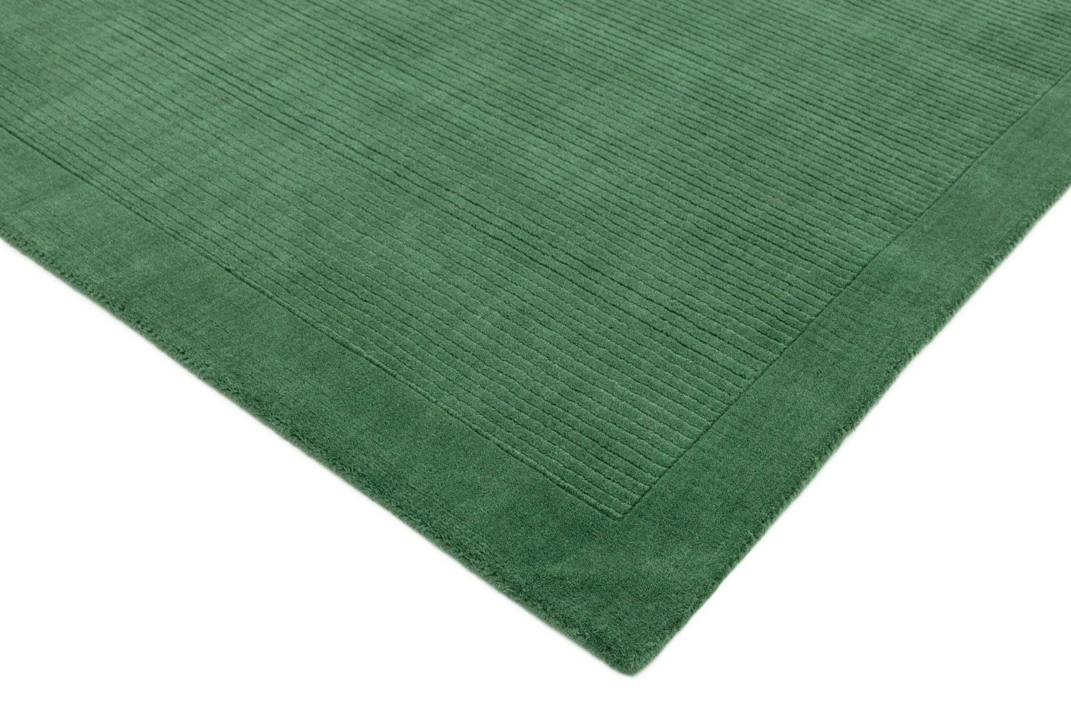Whether vibrant or neutral, let our York collection bring a welcome splash of colour to any living space. Wonderfully versatile, this deep forest-green hue is capable of simultaneously uplifting and calming its surroundings. Hand-woven in India, this rug features a subtle striped design framed by a simple border. The pure wool construction is not just durable and easy to maintain, but has natural thermo-regulating qualities that keep it warm in winter and cool in summer.
