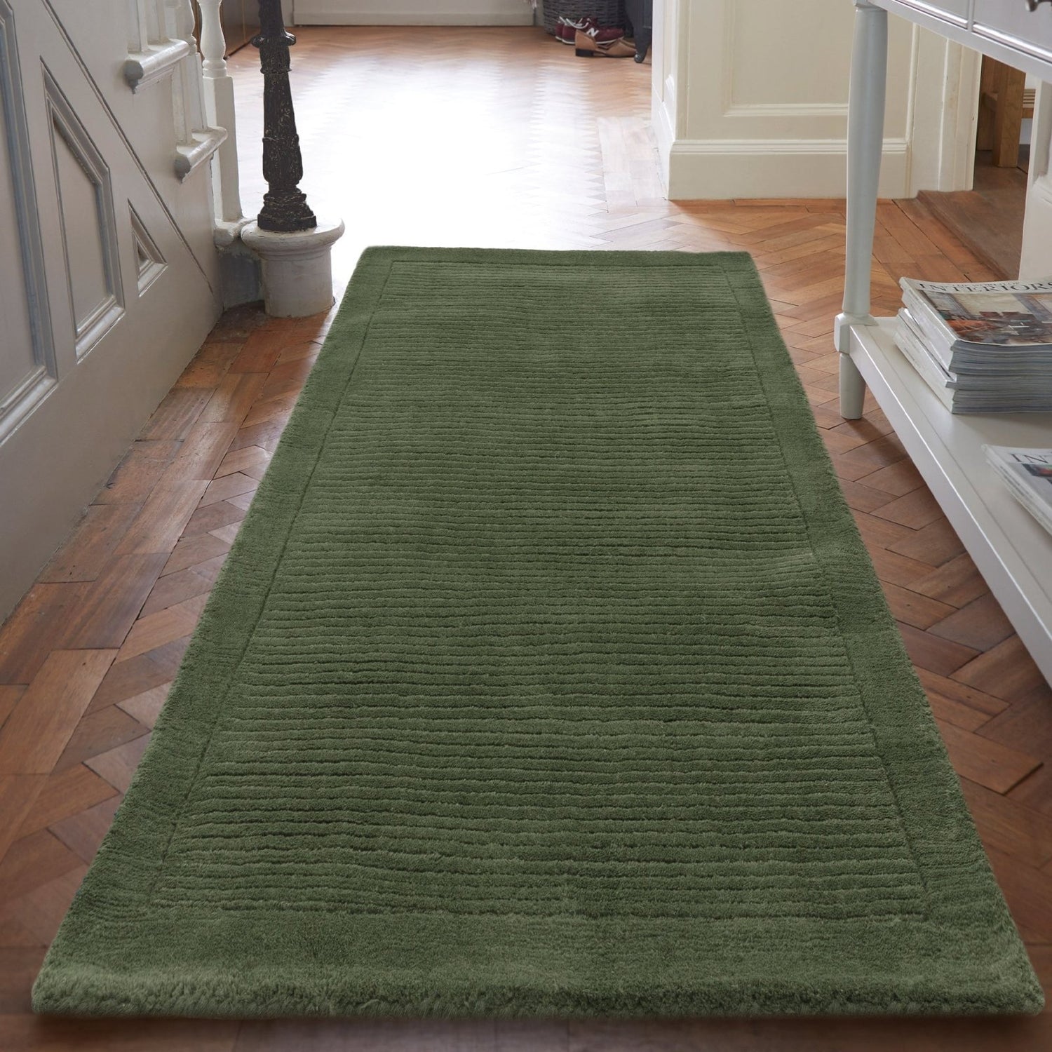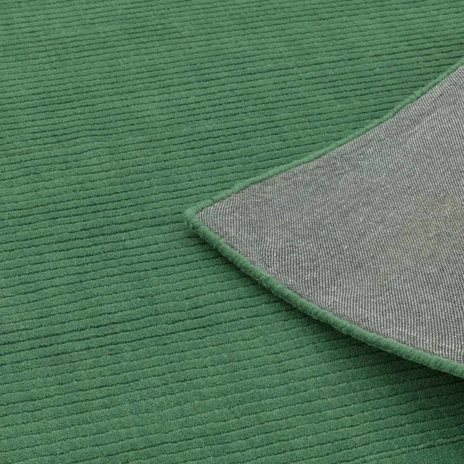 Whether vibrant or neutral, let our York collection bring a welcome splash of colour to any living space. Wonderfully versatile, this deep forest-green hue is capable of simultaneously uplifting and calming its surroundings. Hand-woven in India, this rug features a subtle striped design framed by a simple border. The pure wool construction is not just durable and easy to maintain, but has natural thermo-regulating qualities that keep it warm in winter and cool in summer.