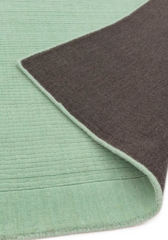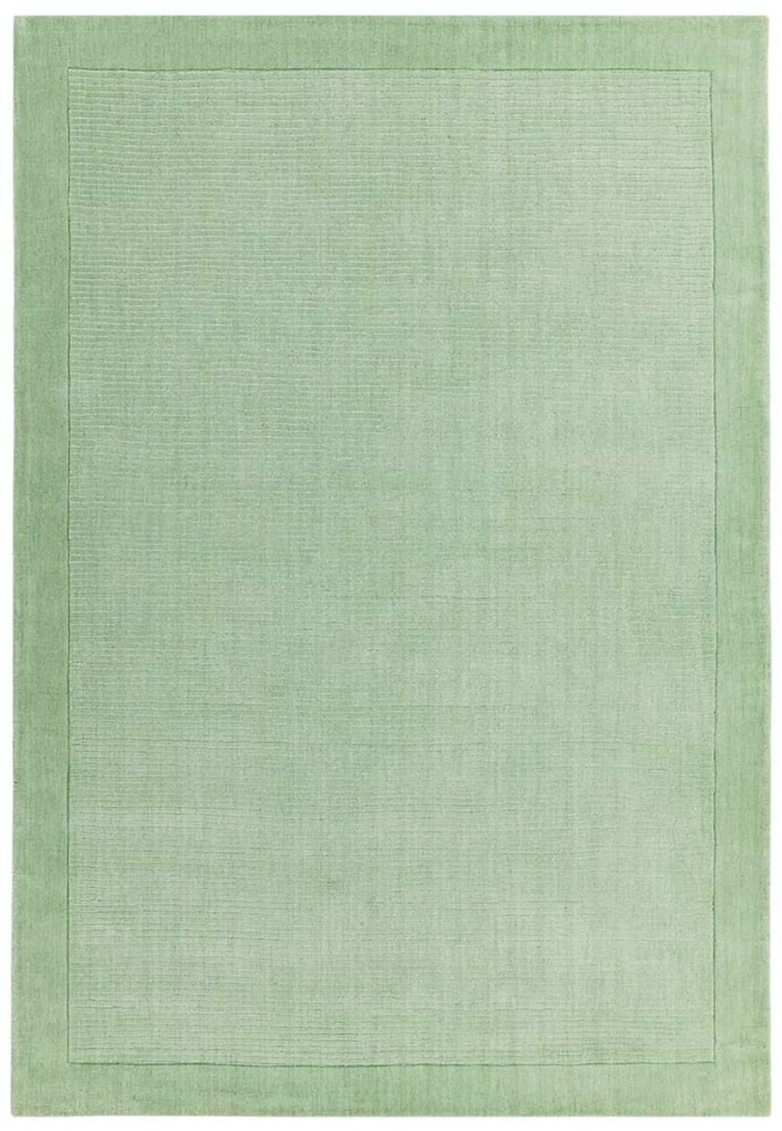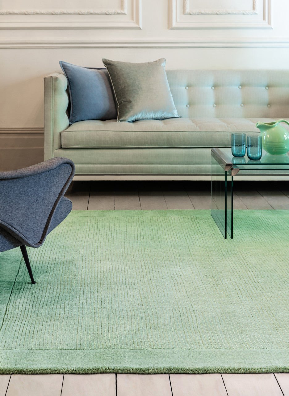 Hand-woven in India, this durable pure wool rug features a subtle striped design and a simple border. The deep forest-green hue offers both a calming and uplifting effect, while its natural thermo-regulating qualities make it a perfect addition to any season.