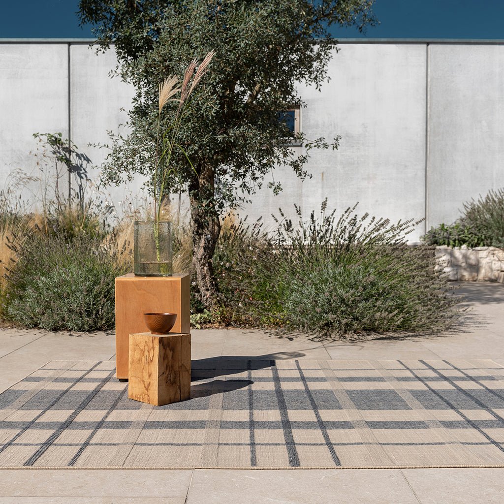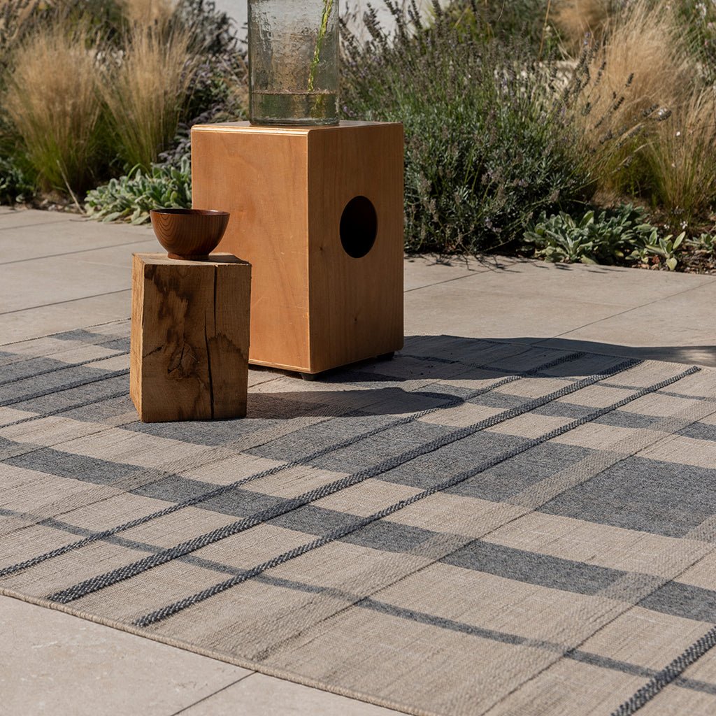 Effortlessly refined, the Zona Denim Check Outdoor Rug blends timeless style with eco-conscious craftsmanship.
