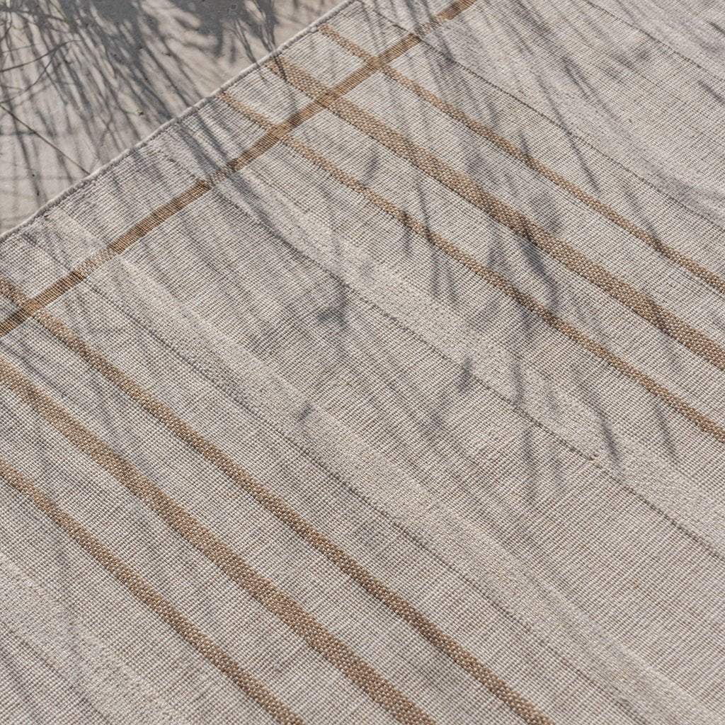 The clean linear layout brings subtle structure, while the flat weave enhances the relaxed, breathable feel, perfect for patios, terraces, or garden rooms.
