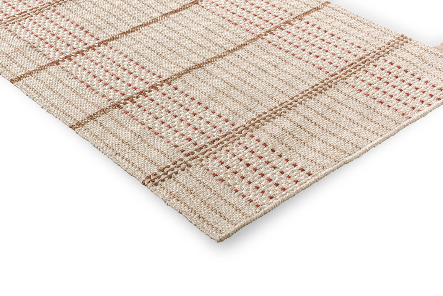 The Zona Terra Stitch runner captures the same earthy elegance as the rug version, with its warm beige base and terracotta red stitching offering just the right touch of colour. The subtle checks create rhythm and movement, ideal for guiding the eye through narrower areas.